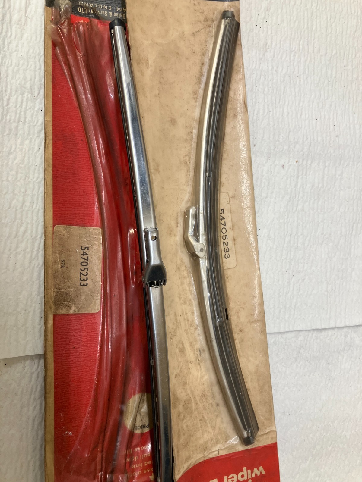 **NOS Lucas wiper blades 54705233 ..5mm bayonet end fitting, listed to fit; Triumph TR250, GT6, Spitfire and early TR6**