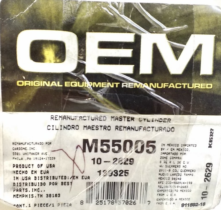 M55005 OEM Master Cylinder Remanufactured M55005 Warehouse Loc 3070 Lot 26 Free Shipping is for continental USA only. If item is shipping anything other then first class and you live in Alaska, Hawaii, or PR please contact us for a shipping confirmation before purchasing as we do ship there but not oversize items. Many of our parts may be new old stock so please see the pictures provided for each item as we take pictures of the actual items we have in stock. The majority of our parts come from over stock at auto parts stores or businesses that have closed. Boxes in poor shape may not be included when shipped. Boxes that the item originally was sold in may show shelf wear or signs of storage on the box but does not affect the item, please see photos for accurate condition of the box if you are concerned but we do check each item for condition. We do not offer repair or installation advice. We are not mechanics. To avoid returns please confirm with your mechanic that you have the correct part number and the part you are purchasing looks the same and is correct. We do not look up applications to confirm it fits your vehicle so that is your responsibility to do so, although we will answer any questions we can to help with your purchase. Our Feedback is automated through E-bay and will be automatically left after positive feedback is received if for some reason you cant leave positive feedback please contact us so we can resolve any problems. Shipping: We ship Monday-Friday only. Orders Placed FRI-SUN will ship Monday. All other orders will ship the next day. We do not ship on Holidays. Any questions please ask before purchasing and we will gladly try to help.