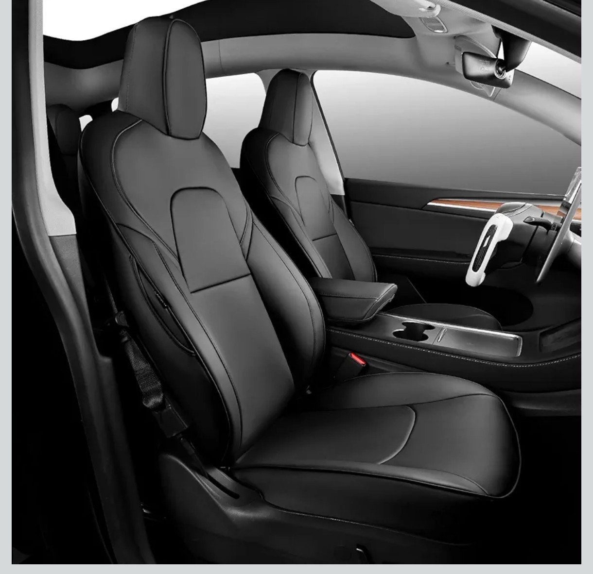 Maysoo For Tesla Model 3 Seat Covers Black seat Covers Nappa Leather 2017-2023