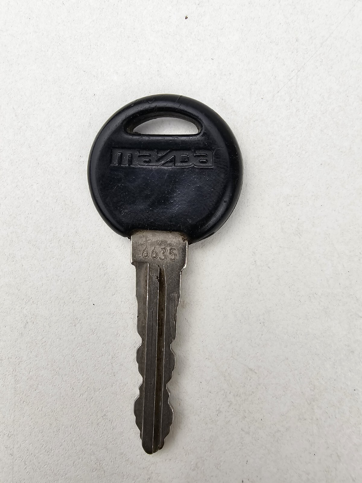 Mazda OEM black and chrome factory single ignition or door key in good condition with average wear. The keychain loop is good. I don't know the year or model that this key came from. Not guaranteed to work with your vehicle. "6635" stamped on key. Please review the pictures to ensure that this is the correct part for your application.