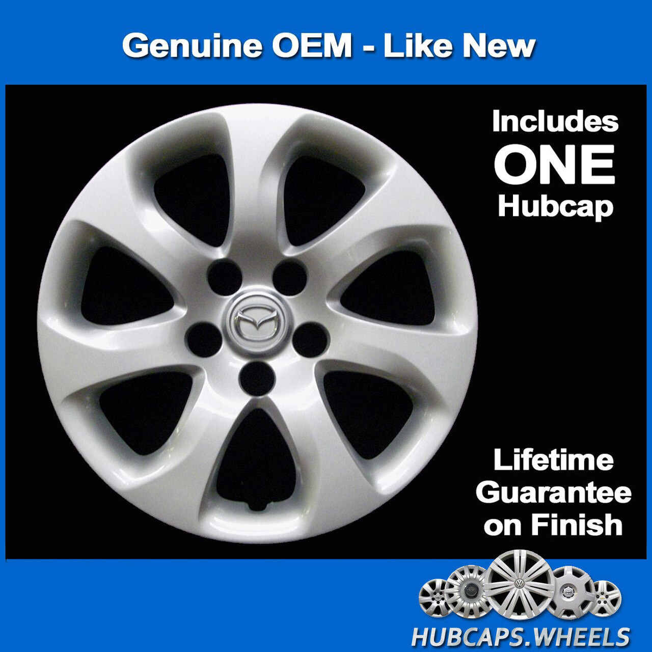 Mazda3 2010-2013 Hubcap - Genuine Factory Original 16-inch OEM Wheel Cover 56555Price is for ONE hubcap. Factory-original Mazda Mazda3 16" hubcap, fits model years 2010, 2011, 2012, 2013. This is the same hubcap that originally came with the vehicle. Our Professionally Reconditioned wheel covers are reconditioned in-house, which is why we can offer you a lifetime guarantee on your hubcap's finish.Listing is for ONE hubcap. Like New Condition! Lifetime Guarantee on the Finish.Manufacturer Part #: BBM237170Make: MazdaModel: Mazda3Year: 2013,2012,2011,2010Size (inches): 16Finish: SilverNotes:  Mazda3 2010-2013 Hubcap - Genuine Factory Original 16-inch OEM Wheel Cover 56555 -  -  -  -  -  -  -  -  -  -  -  -  Mazda3 2010-2013 Hubcap - Genuine Factory Original 16-inch OEM Wheel Cover 56555Price is for ONE hubcap. Factory-original Mazda Mazda3 16" hubcap, fits model years 2010, 2011, 2012, 2013. This is the same hubcap that originally came with the vehicle. Our Professionally Reconditioned wheel covers are reconditioned in-house, which is why we can offer you a lifetime guarantee on your hubcap's finish.Listing is for ONE hubcap. Like New Condition! Lifetime Guarantee on the Finish.Manufacturer Part #: BBM237170Make: MazdaModel: Mazda3Year: 2013,2012,2011,2010Size (inches): 16Finish: SilverNotes: ## Mazda3 2010-2013 Hubcap - Genuine Factory Original 16-inch OEM Wheel Cover 56555 #### **Price is for ONE hubcap.** Factory-original Mazda Mazda3 16" hubcap, fits model years 2010, 2011, 2012, 2013. This is the same hubcap that originally came with the vehicle. Our Professionally Reconditioned wheel covers are reconditioned in-house, which is why we can offer you a lifetime guarantee on your hubcap's finish. **Listing is for ONE hubcap. Like New Condition! Lifetime Guarantee on the Finish.** **Manufacturer Part #:** BBM237170 **Make:** Mazda **Model:** Mazda3 **Year:** 2013,2012,2011,2010 **Size (inches):** 16 **Finish:** Silver **Notes:**  _Professional Cleaning and Reconditioning_ * * * ### **Lifetime Guarantee on Like-New Finish!** None of the hubcaps we sell are cracked, broken, or missing pieces. We have a professional refinishing process using commercial equipment, just like a body shop. We are so confident in our process perfected over 20 years of experience, we offer a **LIFETIME GUARANTEE** that the hubcap we sell you will never fade or peel! * * * #### FREE SHIPPING! ##### **All Items are In Stock and Leave Our South Carolina Warehouse Within 1 Business Day** Before submitting your order, please double-check that your “ship to” address is correct. If additional shipping charges are incurred by hubcaps.wheels as a result of an error you make with your address, we'll need to pass that exact cost on to you. Because UPS will not deliver to a PO Box, in some cases, we may ask you to provide a physical address. If merchandise is not received within 14 business days, please notify us in case the package was lost in transit. Any orders refused at time of delivery will be refunded less the shipping charges incurred to your address and the shipping charges incurred back to our facility. ##### 30-DAY RETURN PERIOD All returns must be made within 30 days from the date of original delivery to you. ##### SAME CONDITION AS YOU RECEIVED IT Returned items must be in the same condition that you received it. If you used it on your vehicle or caused any damage to it, we cannot accept a return. ##### RETURN PACKAGING To ensure a quick refund, include a copy of the packing slip that was in the original package; or print the email receipt we sent you. **Be sure to always put the hubcaps back in the plastic bags they came in and always use the cardboard separators. If you do not package with the bags and cardboard, any shipping damage will be your responsibility.** ##### RETURN SHIPPING Cost of return shipping is your responsibility. Please feel free to send via USPS, UPS, or FedEx, whichever is most convenient for you. We strongly recommend that you send with a tracking number in case your returned item becomes lost or damaged before it reaches us. ##### **ABOUT OUR COMPANY** Since 1999, we're one of the only automotive parts companies in the USA that offers professional-grade reconditioning and refinishing of OEM hubcaps. This means you can purchase the **same quality and BIG savings over dealer prices**. We also offer budget-oriented brand new replica hubcaps and sets that are better quality than cheap, brittle sets available from many other sellers.