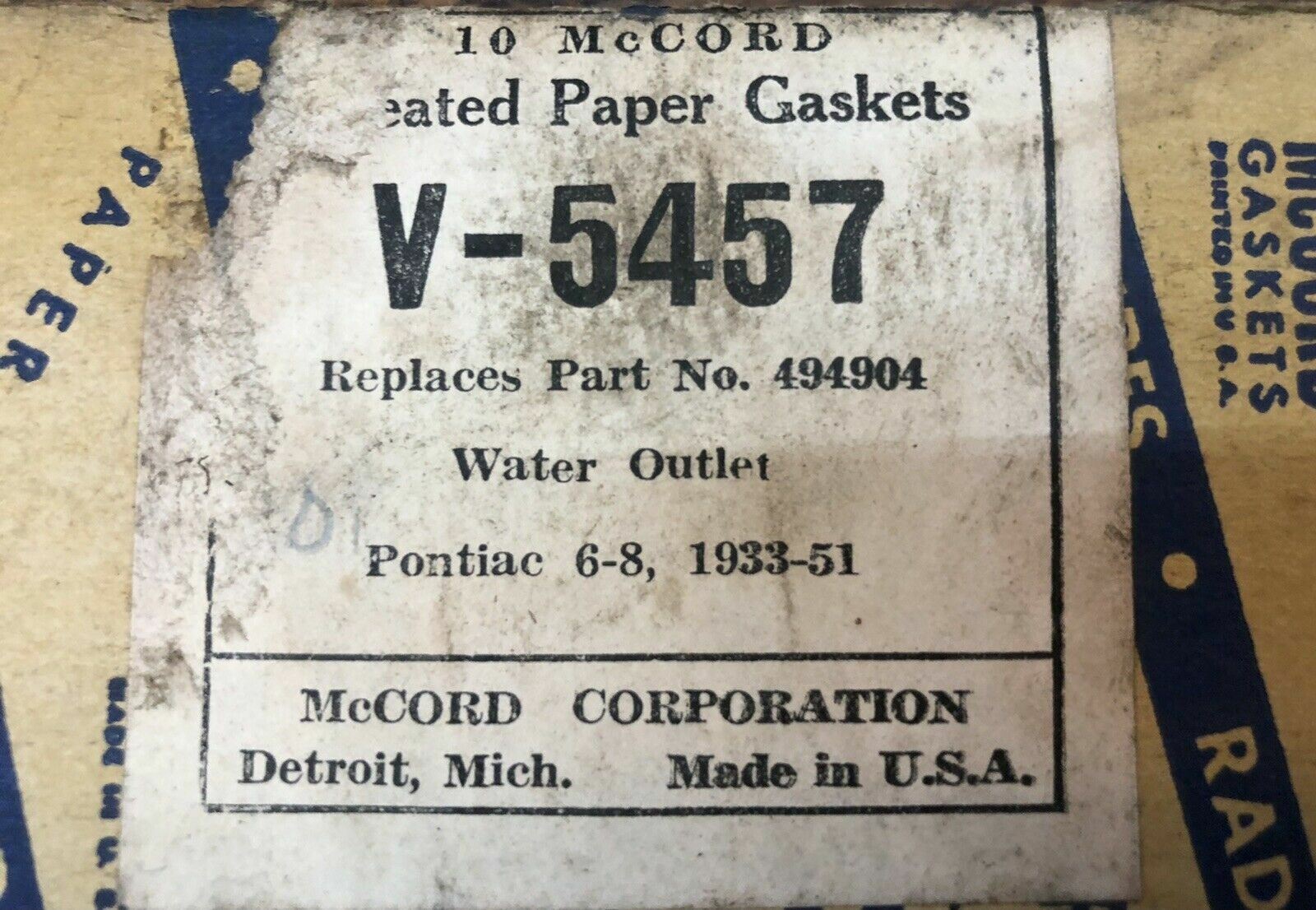 McCORD Thermostat Gasket Lot V-5457 Pontiac 6-8 1933-1951 Vintage Auto Garage
