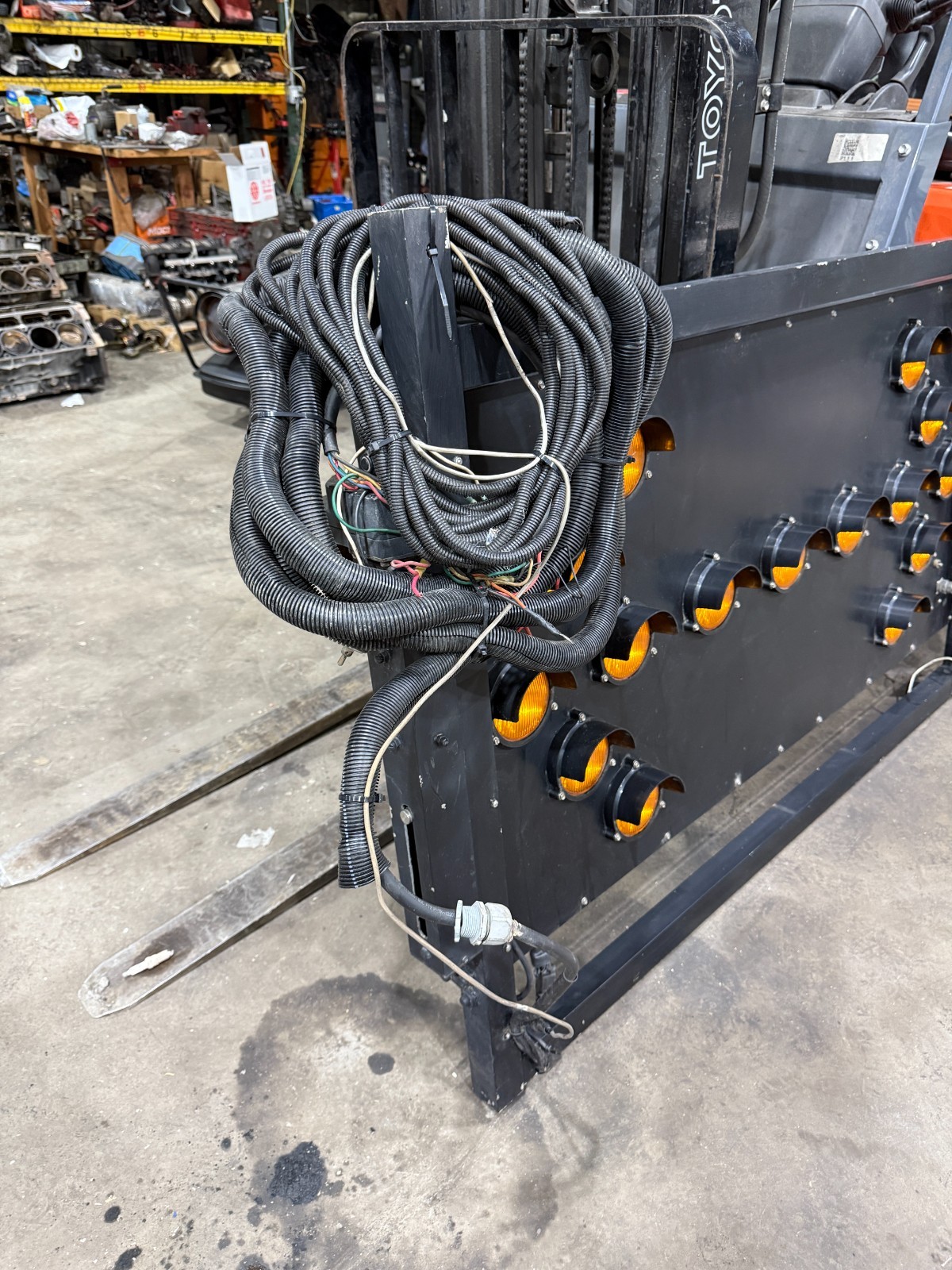 This McDermott arrow board was taken off a Freightliner utility step van. It has lights on one side only. We also have boards that have lights on both sides. We can help with crating and shipping