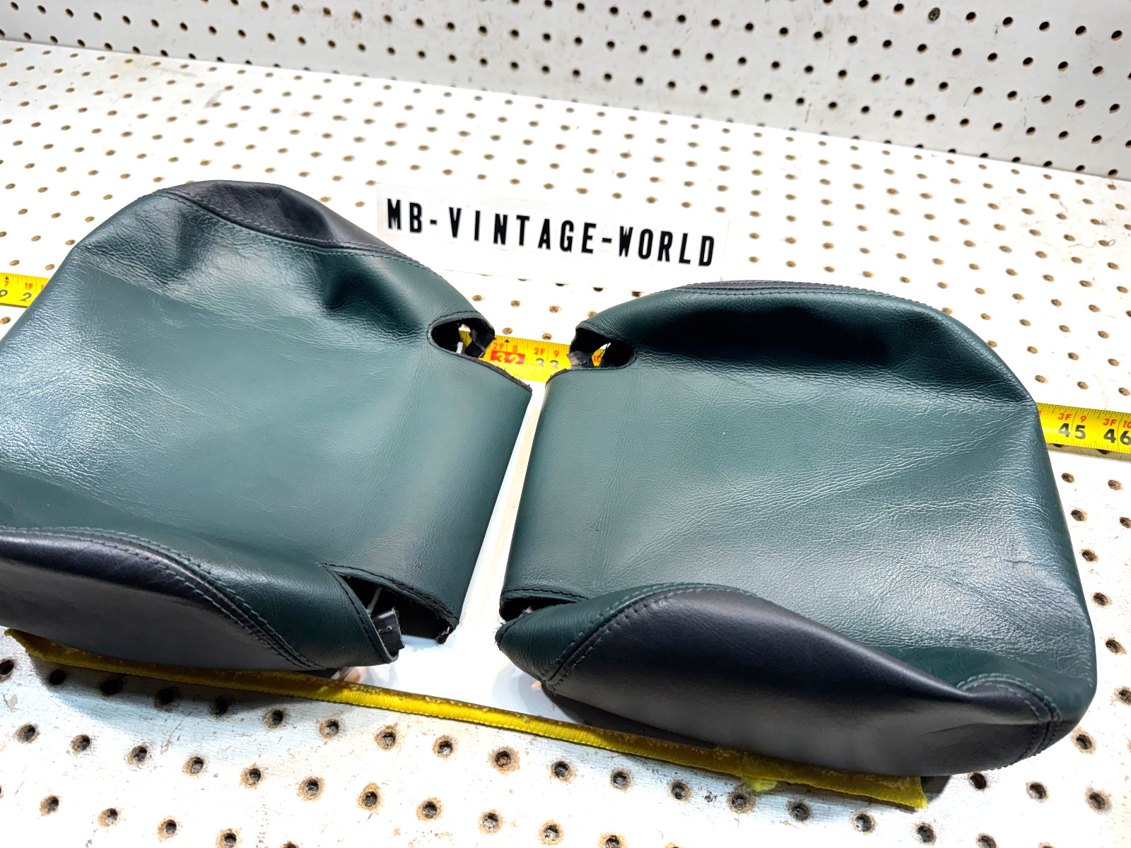 **You are looking at a Mercedes W210 00-02 E320 E430 DESIGNO models sedans and Wagons Front power seat Only headrests LEFT or Right 2 Tone** **ANTHRACITE Dark Green** **original MBZ leather Back Genuine Mercedes OEM used 1 set of 2 Covers withOUT inner Padding.** (ANTHRACITE Green 2 Tone / 2000-2002 W210 sedan and wagons only / No frame No Foam / Will not fit rear seat / This is for power seat only / heat type / **NAPPA/NUBUCK, 2-TONE ANTHRACITE/ANTHRACITE LEATHER (251A) DESIGNO )** Nice and clean This Covers are front seats headrests only, NO FOAM OR FRAME / The black Cloth around the C cut area's Pipping is coming off or fell out!! - SKU: **A** **14** - Brand: **Mercedes-Benz** - Condition: **used** - Notes: **imperfections, leather wear , age , color wear , cloth pipping coming off and light scratches as seen in the photos.** - Genuine part: **Yes genuine Factory.** - What you getting:**Comes as 1 set of 2 Covers per sale.** - Years fitment: **2000-2002 W210 Designo models** - Came off 2001 W210 E320 Designo sedan US model. PLEASE VERIFY THE COMPATIBILITY BEFORE BUYING OR SEND US A MESSAGE AND WE WILL ASSIST YOU. THE BUYER'S MUST DETERMINE WHETHER THE PART WILL FIT HIS/HER CAR. PLEASE MAKE SURE TO MATCH THE PART NUMBER WITH YOUR ORIGINAL PART. WHAT YOU SEE IN THE PHOTOS IS WHAT YOU WILL RECEIVE. **Shipping Policies:** Ground shipping rates apply to the continental United States. International shipping rates apply everywhere outside of the continental US. When shipping internationally, parcels may be subject to Import Tax and Duty Charges, for which the buyer pays. Any international customs fees must be paid by buyer. Shipping cost or carrier may change, based on final destination. Puerto Rico, Virgin Islands, Hawaii and Alaska will require additional shipping charge. Processing time for larger sized items is 2 business day. Large items can only be shipped to a business/commercial address via Freight Shipping. Delivering large items to residential address will require extra cost/additional payment. Delivering large items to the following states may require extra cost/additional payment: FL, ME, NE, MA, RI, CT, NJ, DE, MD, PA, NY, VT. Freight Shipping companies require the customer to unload the shipment. If you are not able to unload your shipment, the shipping company will charge for unloading on your behalf. To pass our shipping savings on to you, we may alternate between FedEx, USPS ,UPS depending on which is most affordable and/or faster. You are welcome to pick up your item at our location. **Return Policy:** All returns must be made and will be accepted within 30 days of the item being received by the customer. Items eligible for return are non-functional or items that differ substantially from the description. Please, do not purchase parts just to check and diagnose your vehicle’s problem. We are not liable for any labor fees associated with the installation or removal of any parts we sell. **Warranty:** We offer a WARRANTY on most of our parts. Most of the parts are tested either before or after removal from the vehicle. Before purchasing an item, the customer MUST verify that the item will fit his/her vehicle. Item may show light scuffs, scratches or other imperfections as a result of this being a used part. **Important!** Once you have received your item in satisfactory condition, please leave us feedback. If there is a concern or issue that would cause you to want to leave negative feedback, please contact us first and we will do our best to resolve the problem and satisfy the situation. **Affiliation :** Slogan and logo are NOT affiliated with auto manufacture's. Names on this store are used for IDENTIFICATION purposes ONLY. **Thank you**