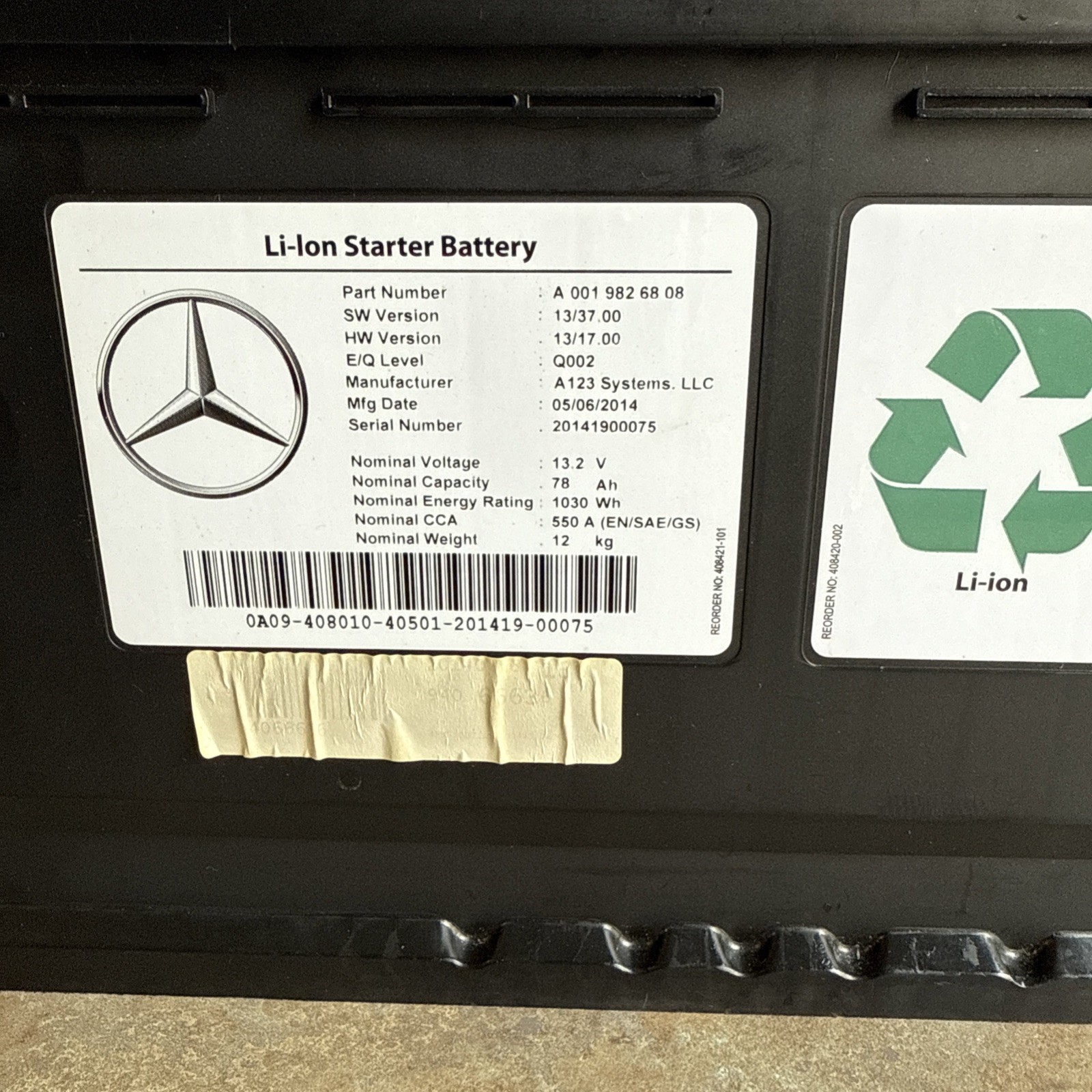 The Mercedes-AMG 12V Lithium Starter Battery Repair Service, with part numbers A0029820608 and A0019829008, not charging I do not own a lithium charger. Battery goes to the highest bidder!
