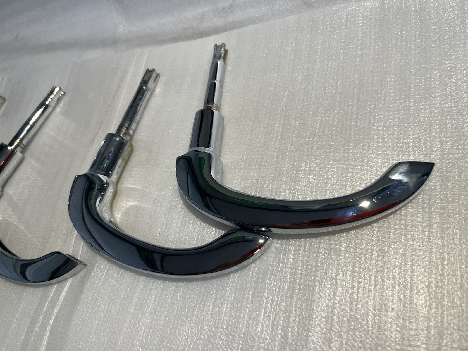 Mercedes Benz W186 W189 W187 W136 Adenauer Exterior Set of 4 Door Handles, these door Handels could fit on many Vintage Mercedes Benz Models 1940-57, Ready for your Restoration Project, sold as a set, we ship worldwide, please look at the photos to be sure fits on your Mercedes Benz .Ask question what you see what you will get . Thanks for Looking