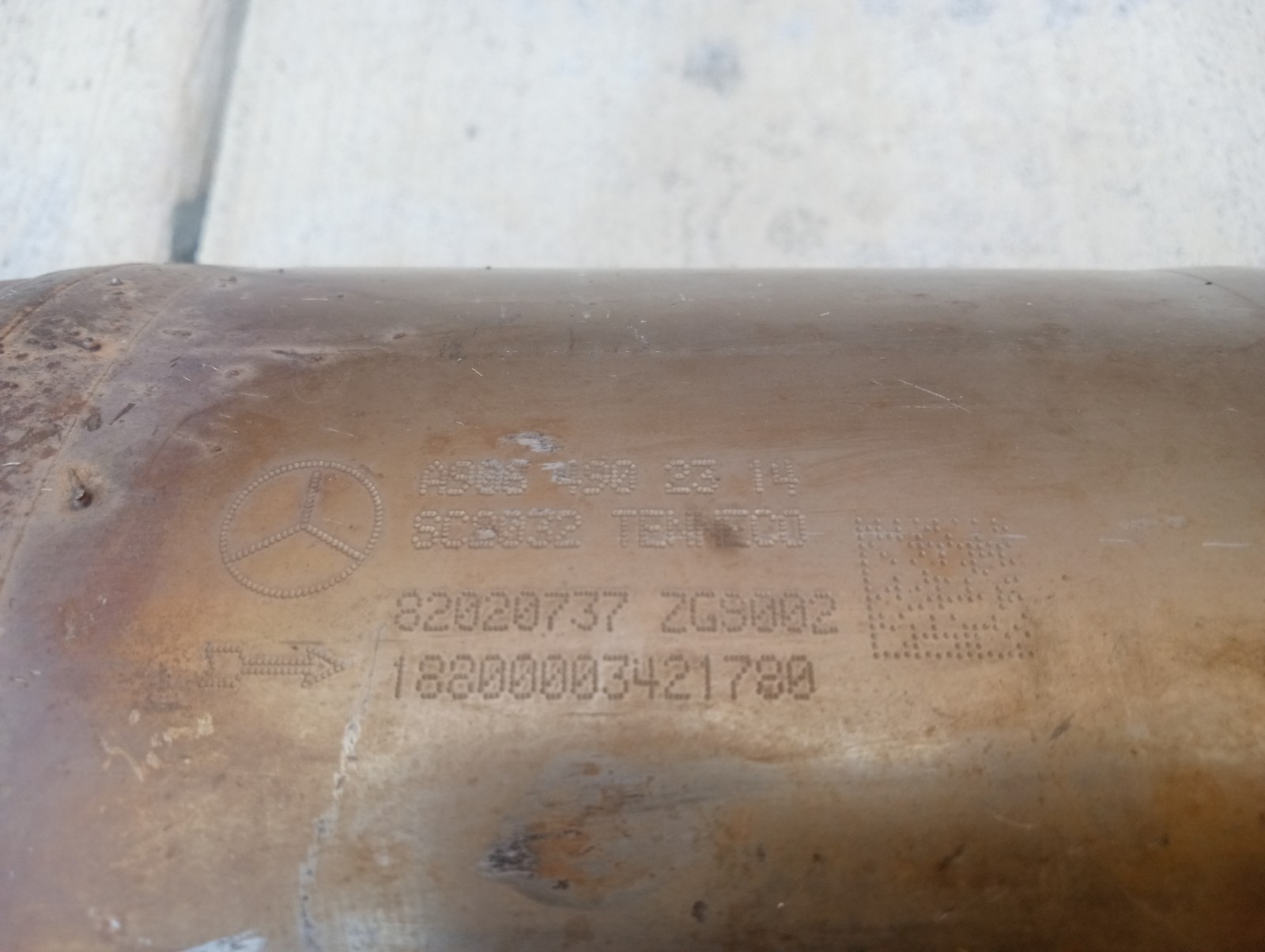 Used Mercedes Dodge Sprinter Catalytic Converter Mercedes part A906 490 23 14 Not sure of interchang Part of an estate where it looks like they had changed out exhaust to an aftermarket system Please see photos for more details Shipping cost may vary if you want it cut down for shipping.