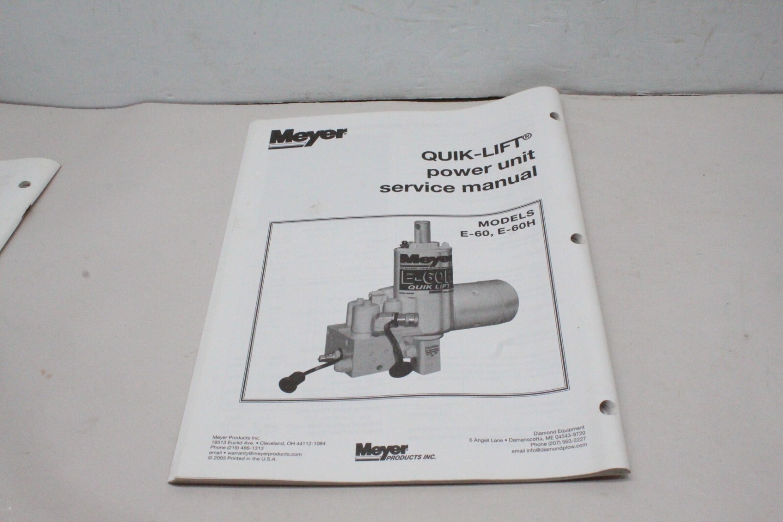 Meyer Quik-Lift Power Unit Service Manual For models E-60, E-60H Nice used condition. Will come as shown. INTERNATIONAL BUYERS - PLEASE NOTE Import duties, taxes, and charges are not included in the item price or shipping cost. These charges are the buyer's responsibility. R35B5
