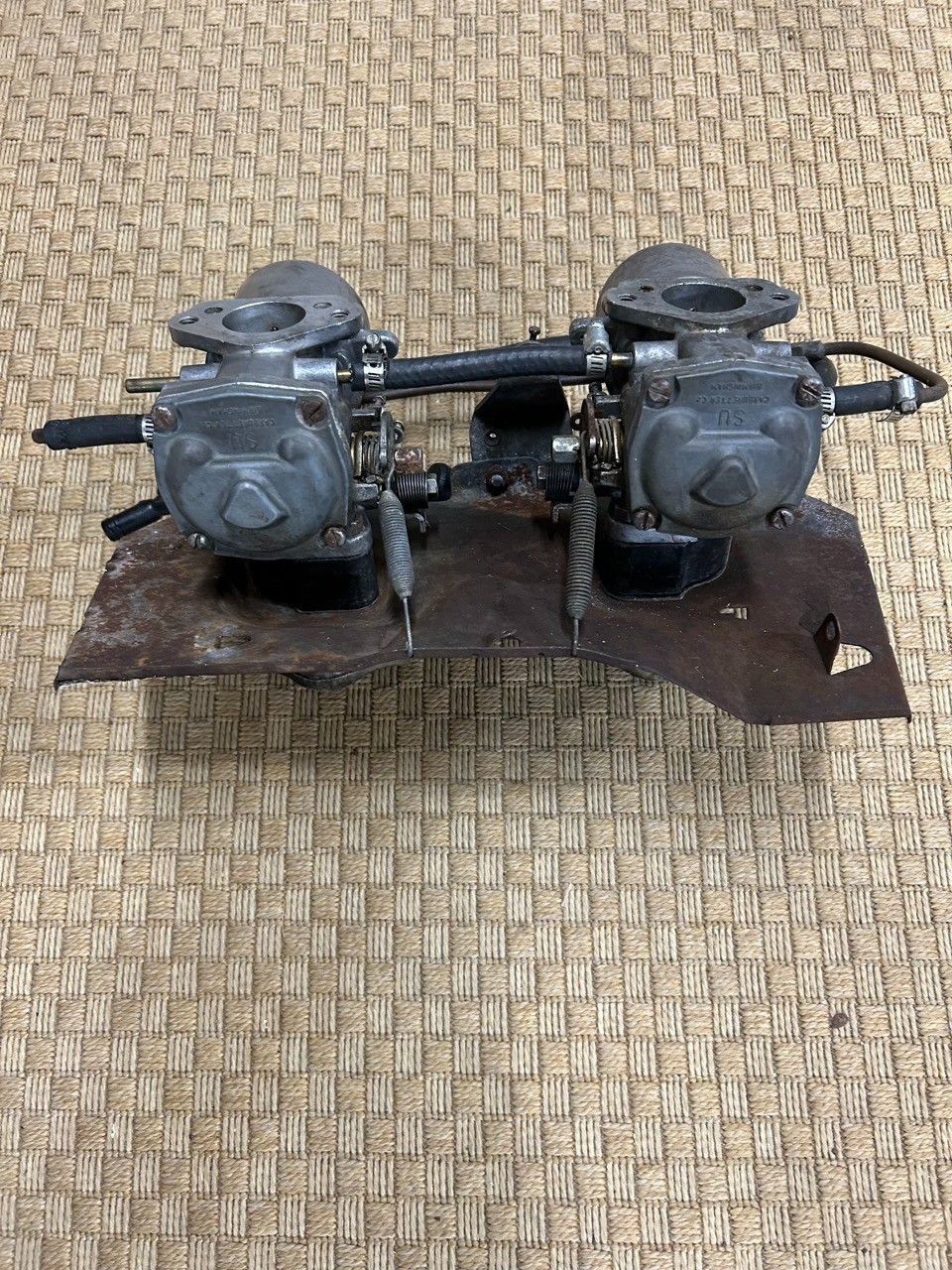 MG MGB SU HIF-4 Carburetor Set Intake Manifold MG Twin Carbs Can't find linkage. replaced by weber years ago Pistons move freely