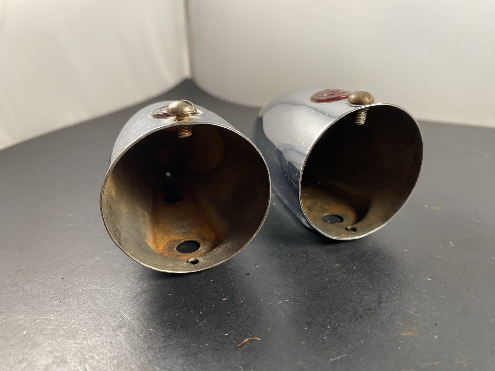 This is a pair of MG TC, TD, TF Fender Light Housings. These items are in good condition and have the King of the Road badges on them. Please see pictures and message me with any questions.