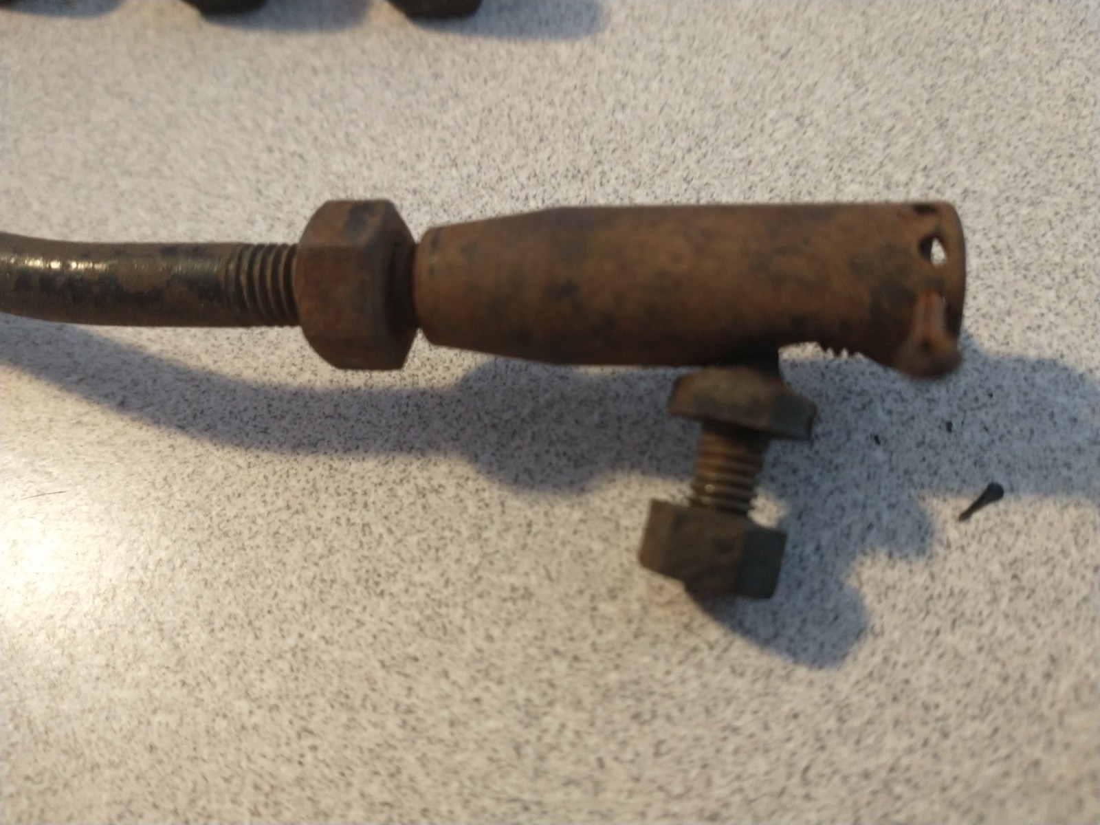 Original MG TD/MG TF SU carburetor throttle interconnecting rod with correct factory bends, threaded ends, and ball‑joint fittings. Includes four original 5/16 BSF bolts with Whitworth‑size heads used to mount the SU carbs to the intake manifold. Hard‑to‑find original hardware, ideal for restorations. Connects the front and rear carb throttle levers. Includes threaded adjustment ends and ball‑joint fittings. Removed from a running MGTF car. Fits all MG TD and MG TF models. This piece is not reproduced in the original bent shape and is very rare. The ball ends are tight and threads are cleanand it includes both original ball‑joint ends Also FOUR Rare ORIGINAL 5/16" BSF thread Bolts with Whitworth Heads - **5/16" BSF thread** - **Short length** (typically around 3/4") - **Used with lock washers** - These secure the **SU carburetor flanges** to the **intake manifold studs** or directly into the manifold depending on the setup. - Each carburettor uses **two bolts** to mount to the manifold (4 total).