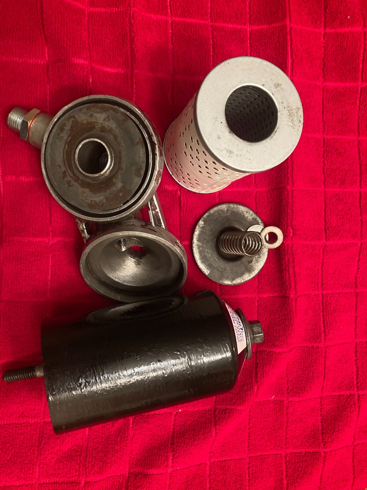 A very nice Tecalemit oil filter assembly fitted to MGBs and MGB/GTs from late 67-70. Can be fitted to any MGB from 62-80. This has all necessary parts some new some used that are often missing. This has a brand new oil filter installed and comes with one extra filter.