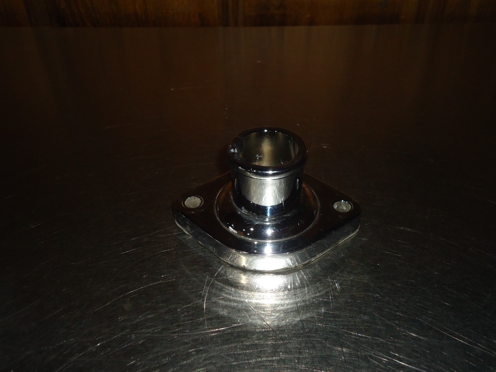 Used chrome Mopar thermostat housing water neck. We are not familiar with all makes and models this fits. Please verify pictures match your application. Housing is dirty and shows some patina from use and sitting. See pics for condition. Can not be returned if installed, ran or has been modified. Must be returned in the same condition as shown.