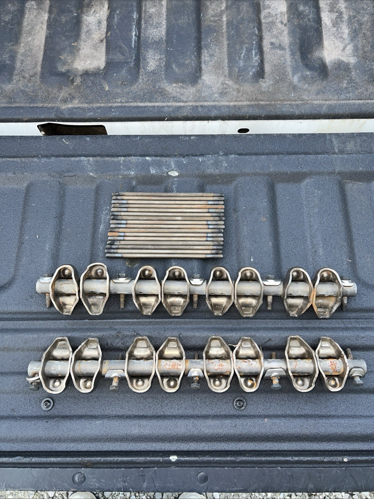 **PLEASE READ ENTIRE DESCRIPTION** **SHIPPING TO UNITED STATES ONLY, NO EXCEPTIONS** **You are buying a set of Stock Rocker Arms and bolts as well as the 16 push rods for I believe 1968 - 1988 LA Small Block Mopar Engines with Hydraulic Lifters. (273, 318, 340, 360). Make sure you double check the years as I'm just going by what I see others listed as.** **The push rods look good and straight as well. They do have some dark spots that I pointed out.** **These are off of a 1971 318 engine. I degreased them and rinsed off in hot water. They do have some flash rust in spots but a quick spray of WD-40 should clean them off.** **I have wrapped them in plastic which is scented so that will be the pleasant smell.** **I PUT WEIGHT AND BOX DIMENSIONS IN, SHIPPING WILL BE WHAT IT CALCULATES AS, NO EXCEPTIONS AS THAT IS WHAT I WILL BE CHARGED TO SHIP THESE.** **Shipping within the US.****PAYMENT MUST BE RECIEVED WITHIN 5 days or I reserve the right to relist item and will file a claim for non payment.** **I will leave feedback after feedback is left for me, that way I can make sure you are happy with your purchase and any problems can be addressed** <