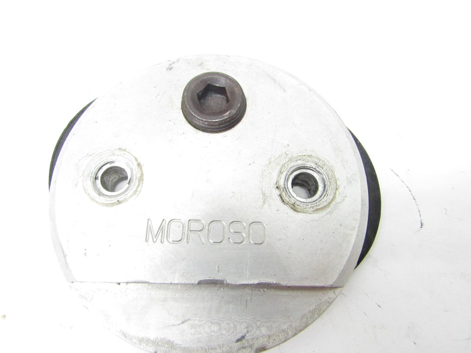 Here is a good used MOROSO aluminum oil filter block-off plate adapter. Good shape. We do combine shipping on multiple items.