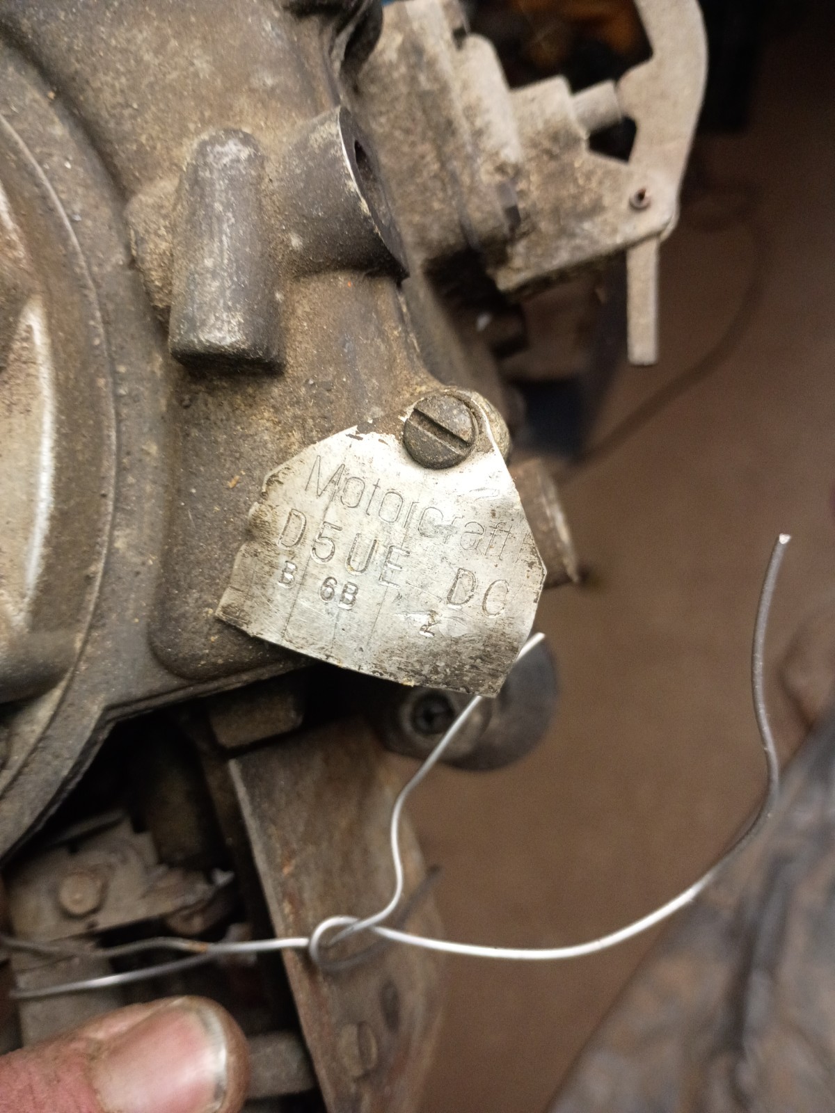 Motorcraft 2150 2-barrel model tag starting with "D5UE" for the mid-1970s era
