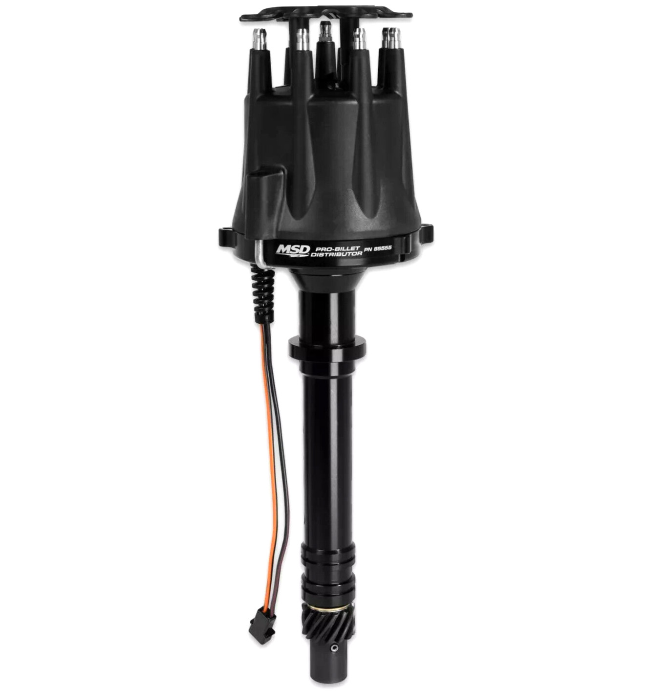 **MSD SBC BBC Pro Billet Aluminum Black Distributor Small and Big Block GM 85555** Distributor Model or Series: Pro Billet Make: Chevy Engine: 262-400, 396-454 Trigger Type: Magnetic Advance Type: Mechanical Cap Style: Male/HEI Cap Color: Black Housing Material: Aluminum Housing Finish: Black Anodized Requires Ignition Box: Yes Distributor Shaft Diameter: 0.500" Distributor Gear Material: Iron Cap Diameter: 4.940" Compatible with Computer Control: No Rotation: Standard Shaft Material: Steel Fixed Collar or Slip Collar: Fixed Collar Includes Ignition Coil: No - CNC machined billet aluminum housing and billet aluminum base - Advance plate and weights are fine blanked from chrome moly steel - QPQ coated for friction reduction - QPQ coated polished steel shaft - guided by sealed ball bearings - Will Not Accept Vacuum Advance Canister - Must Be Used with An MSD Ignition Control - Supplied with HEI style distributor cap/rotor (accepts Cap-A-Dapts) - O-ring seals can be installed for oil press. control (Mods only) - Special oil tract improves lubrication to the dist./cam gear - Nylon pads ensure smooth operation of the advance weights - Advance weight pins are staked and tig welded to the plate - Mech. advance assem. can be locked out for crank trigger systems The housing is machined from a billet of 6061-T6 aluminum on a state-of-the-art CNC machine producing exact tolerances. For high rpm stability, a .500" steel shaft is supported by a sealed ball bearing and a long sintered bushing. This shaft also receives a QPQ coating for friction reduction and resistance to corrosion. A precision machined reluctor is attached to the shaft which triggers the magnetic pick-up mounted in the housing. This high output magnetic pick-up is the most accurate way to trigger your ignition. Plus, with no moving parts to wear or adjust, the pick-up is maintenance free! Just above the pick-up is MSD's adjustable mechanical advance assembly. Different springs and stop bushings are supplied so you can tune an advance curve to match your application. Must be used with an MSD 6, 7 or 8-series ignition.
