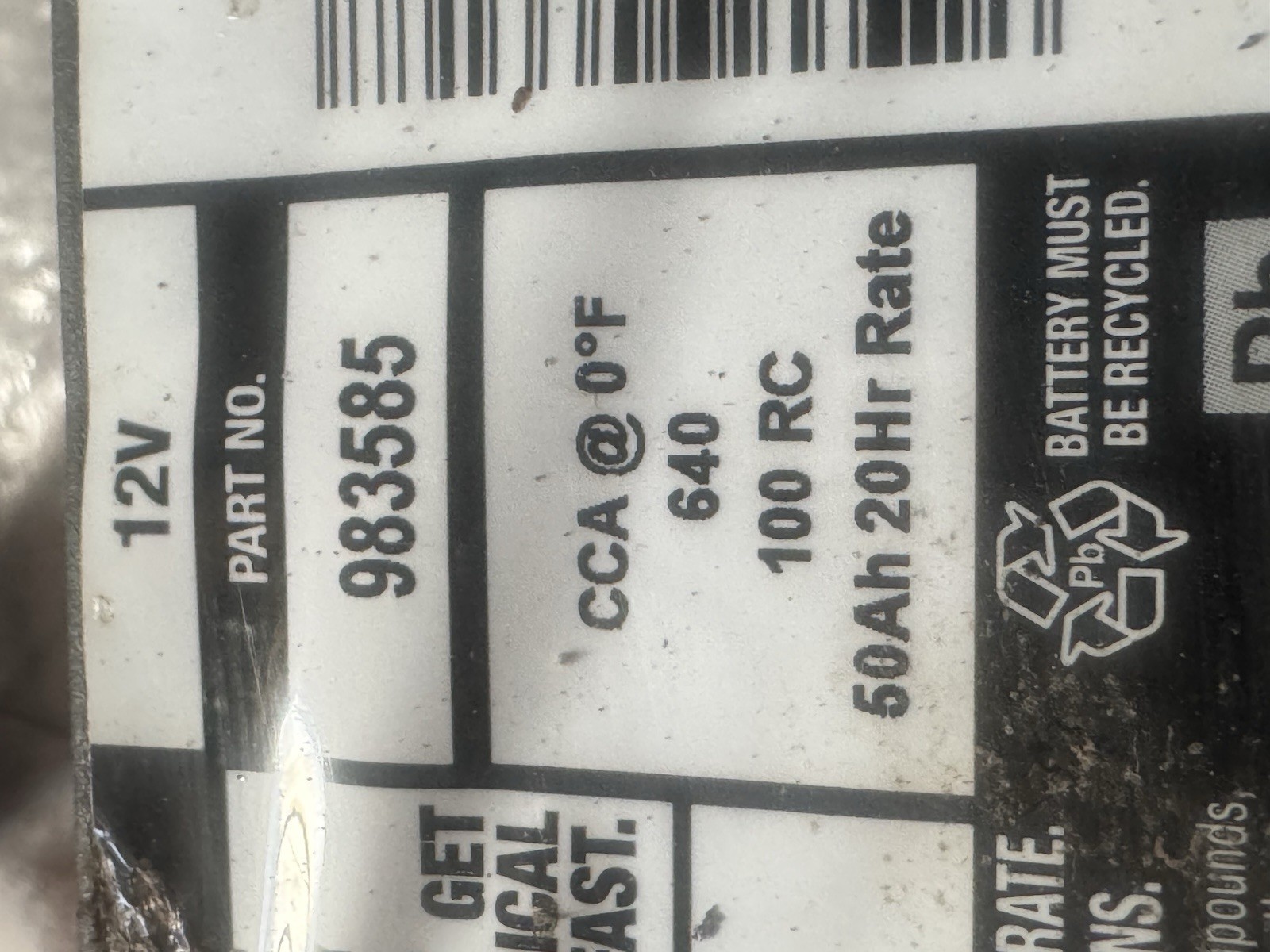 Napa Legend 35agm Battery. 640ccas 12/24 Sticker