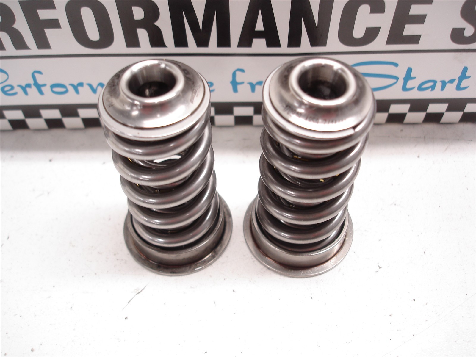 THESE ARE NICE RACE USED SPRINGS THAT COST $700+ A SET WHEN NEW. HENDRICK PSI CUSTOM PART #160138. THESE MEASURE 1.150 OD x .800" id OF THE OUTER SPRING x .525" ID OF THE INNER. THESE ARE DUAL SPRINGS WITH NO DAMPER AND ARE REM POLISHED. INCLUDES SET OF XCELDYNE STEEL RETAINERS MATCHED TO THE SPRINGS THAT FIT 6mm AND 7mm STEM VALVES ONLY. THESE LOCKS ACCEPT DEL WEST / XCELDYNE MINI TOP LOCK KEEPERS ONLY WHICH THE MINI ONLY WILL FIT 6mm AND 7mm STEM VALVES. **_NO LOCKS ARE INCLUDED_**. IF YOU WANT TO USE THE SPRINGS WITH LARGER STEM VALVES YOU WILL HAVE TO SOURCE YOUR OWN SET OF RETAINERS. ALSO INCLUDES 16 TOTAL STEEL SPRING SEATS FOR THE BOTTOM. THESE FIT INTO A 1.495" OR LARGER SPRING POCKET ON THE HEAD. THESE MEASURE 1.495" od AT THE LIP, 1.275" od AT THE STEP AN ARE 1.150" id OF THE STEP TO LOCATE ON THE OD OF THE SPRING. THE CENTER HOLE IS .518" id. 165# AT INSTALLED HEIGHT OF 1.950" OR 104-107# AT INSTALL HEIGHT OF 2.050" IF INSTALLED AT A HEIGHT OF 1.950" WITH .600" LIFT THEY ARE 475# AT 1.350" IF INSTALLED AT A HEIGHT OF 1.950" WITH .700" LIFT THEY ARE 550# AT 1.250" BIND AT 1.180" THIS SIZE CAN WORK WELL IN MOST STOCK STYLE HEADS **WITH THE CORRECT OIL SEALS AND GUIDES**. IF YOU ARE WANTING TO USE THESE ON LS ENGINE YOU NEED TO CHECK THE DIAMETER OF YOUR VALVE SEALS AS THESE SPRINGS HAVE A SMALLER .525" id AND MAY NOT CLEAR STOCK VALVE SEALS ON LS ENGINES. THESE ARE BEST SUITED FOR VALVE GUIDES THAT HAVE THE INTERNAL O-RING TO SEAL INSTEAD OF THE UMBRELLA OR TRADITIONAL OUTER SEALS. **THESE ARE NOT** A DIRECT BOLT IN REPLACEMENT FOR ANY STOCK HEADS OR LS SPRINGS, ONLY A VERY SIMILAR SIZE THAT YOU CAN MAKE WORK IF YOU HAVE THE RIGHT GUIDE/VALVE SEAL COMBINATION. YOU CAN EVEN REMOVE THE INNER SPRING AND JUST USE THEM AS A SINGLE SPRING SET UP. CONDITION: USED INVENTORY #925-418 Terms of Sale **WE SHIP WORLDWIDE ON MOST ITEMS UNLESS OTHERWISE STATED IN THE DESCRIPTION. ON MULTIPLE ITEMS PURCHASED ACTUAL INTERNATIONAL SHIPPING COSTS WILL BE CALCULATED AT THE END OF PURCHASE AND WILL BE OF ACTUAL COST BASED ON THE SERVICE THAT YOU CHOOSE TO YOUR LOCATION. MOST INTERNATIONAL SHIPMENTS WILL GO OUT VIA USPS "PRIORITY MAIL INTERNATIONAL" WITH SOME SMALL LIGHT ITEMS GOING 1st CLASS INTERNATIONAL. ALL INTERNATIONAL SHIPMENTS HAVE A 1-2 DAY LEAD TIME FOR SHIPPING ONCE PAYMENT IS RECEIVED. WE ONLY ACCEPT PAYPAL FOR INTERNATIONAL PURCHASES. IF YOU NEED A SHIPPING QUOTE PRIOR TO PURCHASING, JUST SEND US AN E-MAIL AND WE WILL GET YOU THE RATE. WE OFFER A COMBINED SHIPPING DISCOUNT ON MULTIPLE ITEMS PURCHASED AND SHIPPED OUT AT THE SAME TIME. PLEASE CLICK ON THE "REQUEST TOTAL FROM SELLER" BUTTON BEFORE SENDING PAYMENT AND WE WILL SEND OUT A REVISED INVOICE WITH COMBINED SHIPPING.**  Powered by SixBit's eCommerce Solution