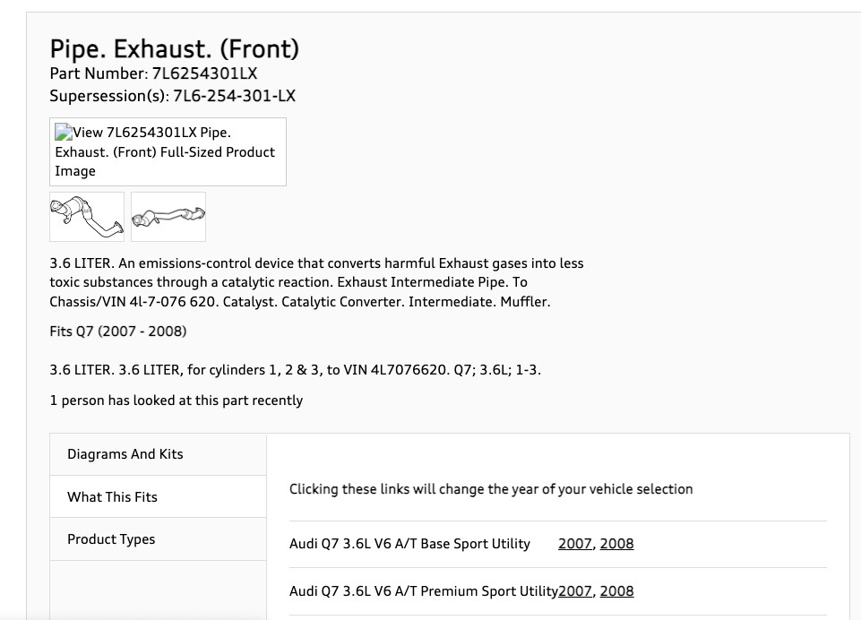 ## or free local pick up, we can give you an invoice ## THIS PART ISĀ ORIGINAL EQUIPMENT MANUFACTURER (OEM) ## Original Equipment Manufacturer OEM 3.6 LITER. 3.6 LITER, for cylinders 1, 2 & 3, to VIN 4L7076620. Q7; 3.6L; 1-3. New! 2007 2008 Audi Q7 Volkswagen Touareg 3.6L V6 Front Catalytic Converter OEM
