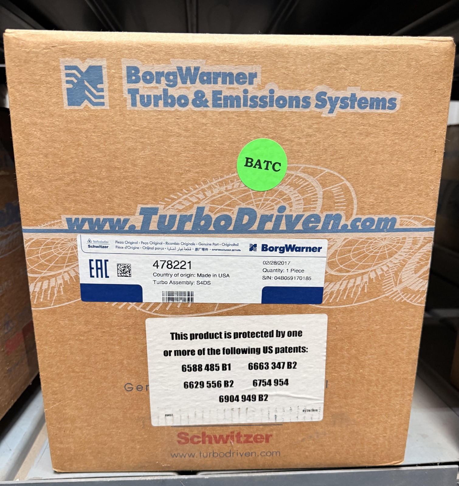 (478221) **Turbo Diesel of** **Oklahoma** **No core charge or** **need to return your old unit.** Product Type: Turbocharger Cartridge CHRA Condition: Remanufactured Brand: BorgWarner Model: S4DS006 Interchange Part Number(s): 0R5598, 0R5730, 178221, 193715, 196536, 196536R, 311850, 311850R, 478221, 496536, 7C7503, 7W3844 Turbo Diesel is not responsible for any product that may not or does not fit your specific vehicle. Please make sure that this item will fit and/or will work for your vehicle before purchasing.