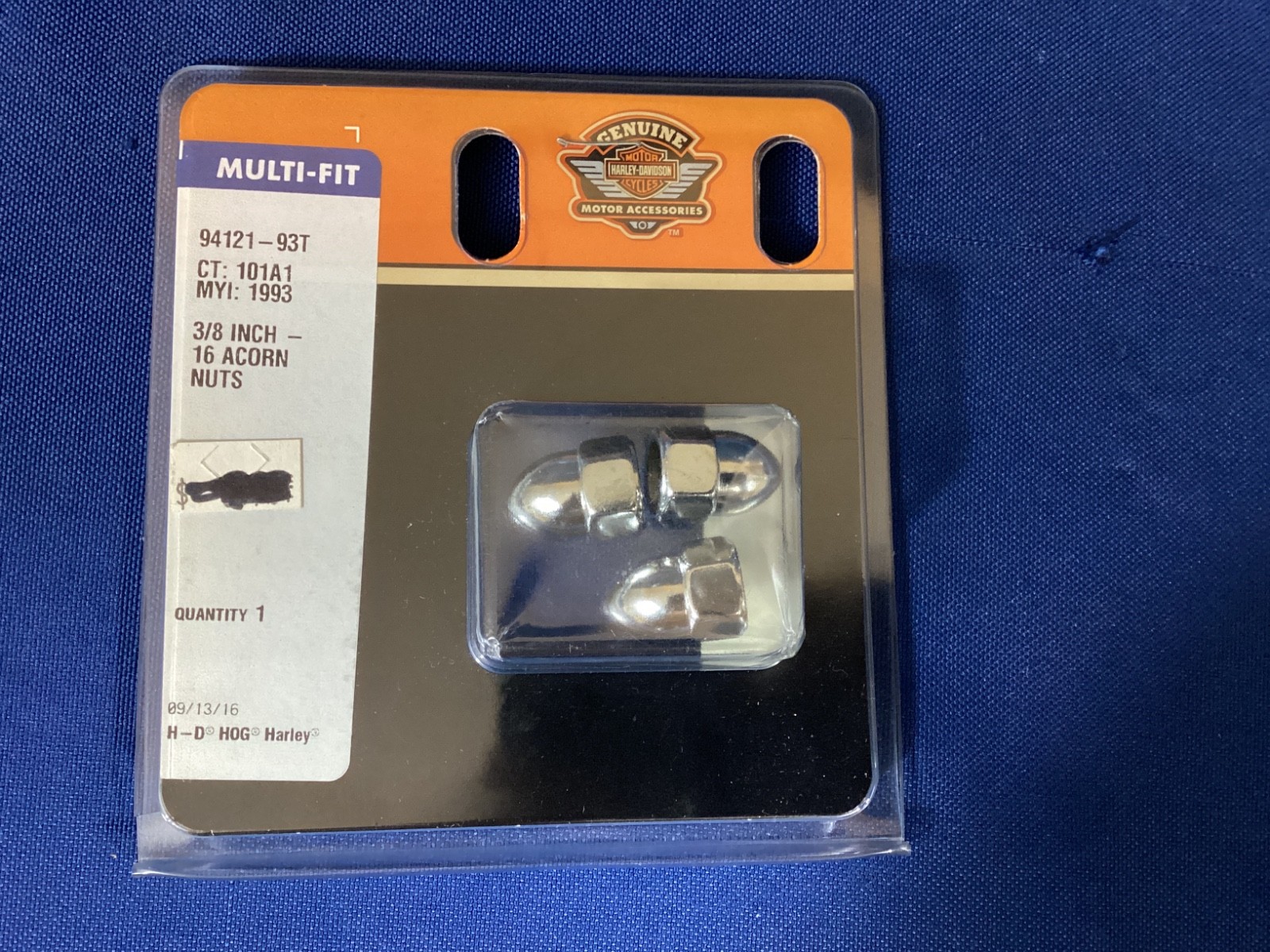 **NEW OEM Harley Davidson 3/8” - 16 Threaded Acorn Nuts, Chrome.** **P/N: 94121-93T** NEW IN ORIGINAL PACKAGING, UNUSED, **Since we are not a franchise dealer, we sell all of our parts as used, even if they are new in the box. Please ask questions, we are happy to answer them.** CHECK YOUR DEALER FOR MORE FITMENT INFORMATION. We are a family that loves to ride and we ride just about everything. We come across deals on inventory of all sorts and we pass those savings on to you. We strive very hard to make every customer happy, provide accurate descriptions with plenty of pictures and will do our best to resolve an issue if one should arise. We are NOT a Harley, Honda, Yamaha or any other franchise dealer. It is very expensive to list and ship items. We kindly ask that you follow these suggestions before buying from us. If you are not sure if it will fit your ride, DO NOT BUY IT! If you are not sure if you will like the color, DO NOT BUY IT! If you have not looked at the pictures or completely read the description, DO NOT BUY IT! If you are not sure that it is what you need, DO NOT BUY IT. If you know what you want/need, have done your due diligence, asked the proper questions, and are looking for a great deal on this, BUY IT! Ask questions prior to purchasing as all sales are final. We will assist in any way that we can and answer any questions that you may have. WE DO NOT ACCEPT RETURNS UNLESS WE HAVE MADE A MISTAKE ON OUR END. We sell new/used/OBS/ items. We describe them as accurately as possible. If you have a problem with any item, shipping damage, does not work as it should or something else, CONTACT US! All orders are shipped ground economy. If you would like your order expedited, please contact us prior to purchasing so we can add additional shipping fees. We ship within 48 hours, on BUSINESS days, often same day if possible. Thank you for looking and God bless. OB Office wall. Montgomery