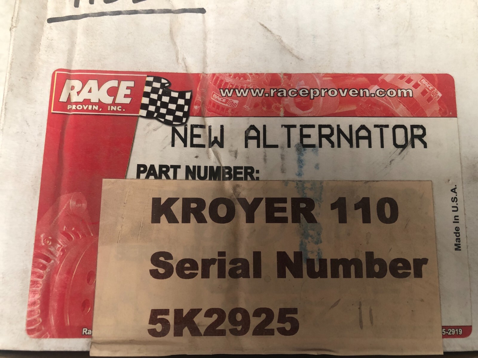 New Race Proven 1 wire race alternator custom made for Kroyer Racing Engines. these are 110 amp alternators. Box opened for pictures. Been in inventory for a few years Cost was over $400 each almost 20 years ago