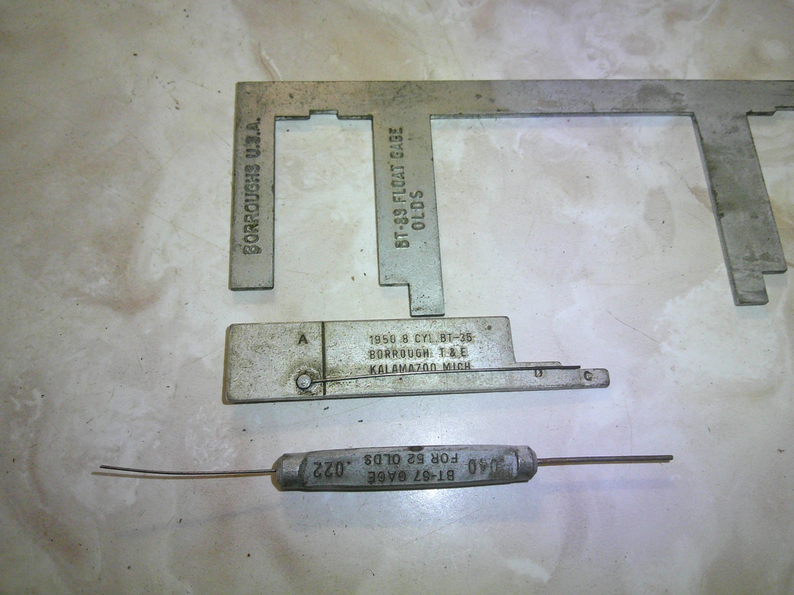 Up for Buy-It-Now is a nice carburetor tool kit, Borroughs part number BT-65. This item was obtained from an old service garage and is not a newly remanufactured part. According to my Borroughs Manual, and limited research on the internet, this tools are used on the following models and years with a Rochester carburetor: BT-36..Choke rod, unloader, fast idle..Marked 1950 Olds 8 Cyl. The tools and pouch are in good used condition and are free of any damage. Please feel free to E-mail me questions. International bidders are always welcome. Thanks for looking!!!