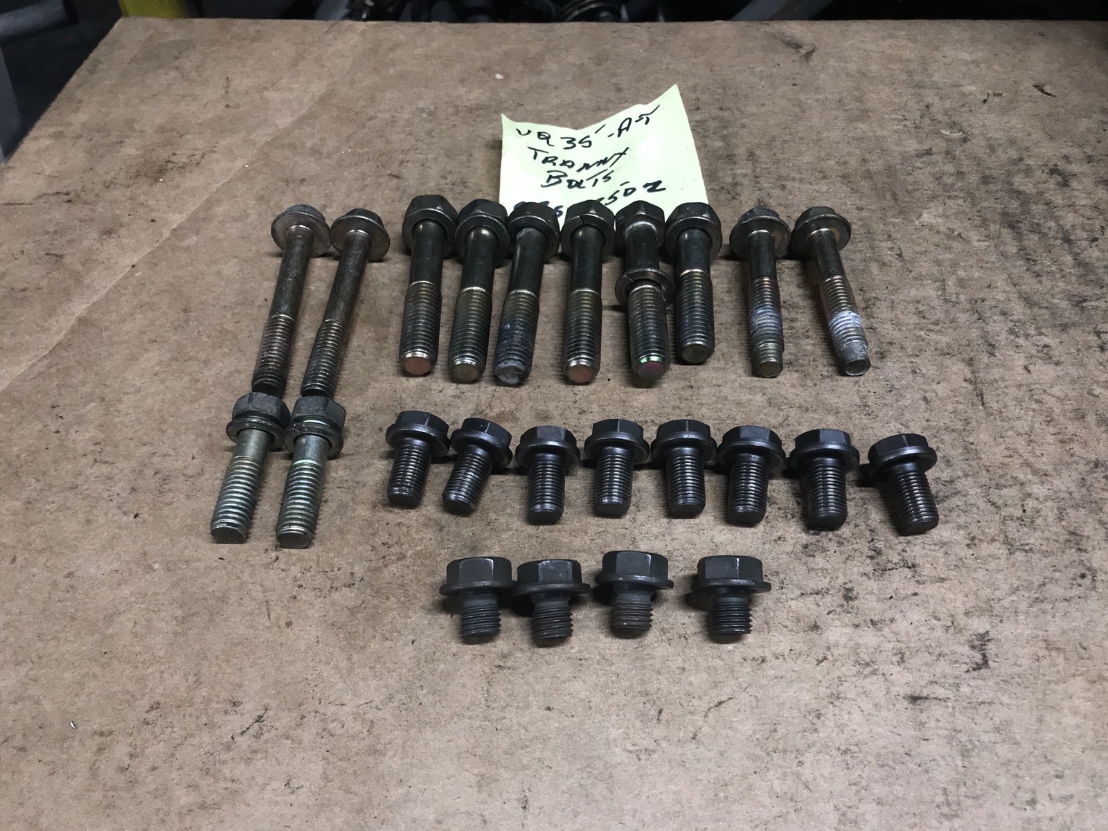 Up for sale is a set of Nissan 350Z Infiniti G35 VQ35DE Automatic Transmission And Flywheel Bolts Oem Imported from Japan Item was removed from a VQ35DE engine with an automatic Rear wheel drive transmission in Japan and imported to the U.S Item is used and may have signs of wear and tear but in good working condition. Please view picture to make shore this item fits your application. PLEASE CONSULT WITH YOUR MECHANIC PRIOR TO PURCHASING TO SEE IF THIS ITEM WOULD BE RIGHT FOR YOU.\*\* WARRANTY POLICY : IN THE UNLIKELINESS OF RECEIVING A DEFECTIVE ITEM I WILL PROVIDE A REFUND OR EXCHANGE SHOULD THE BUYER RETURN THE ITEM FOR NO REASON, THE BUYER WILL BE RESPONSIBLE FOR A 15% RESTOCKING FEE, AS WELL AS ALL SHIPPING CHARGES. ALL ITEMS ARE COVERED BY AN 30 DAYS WARRANTY Thank you for viewing my item And you can also check out my other JDM listings