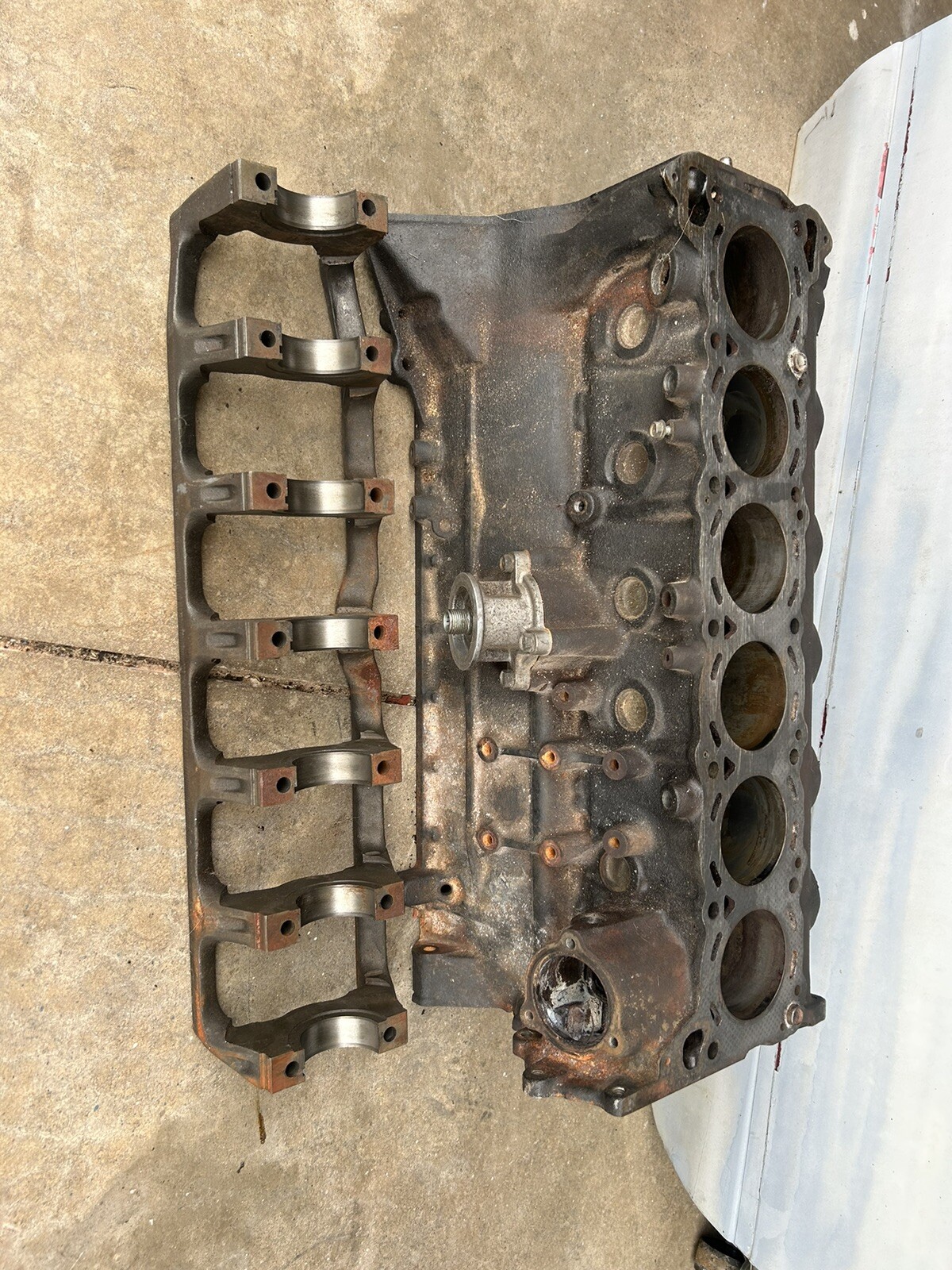 **Few cylinder walls have some surface rust, mains are great condition! Deck has some scratches as well! Will need machine work, but that’s expected with any bare block, also there is one oil squirted that’s broken**