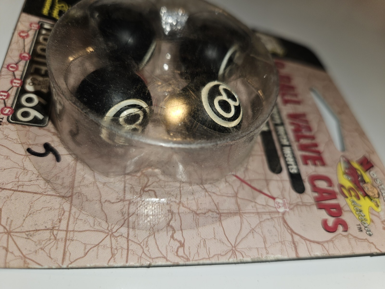 Enhance the look of your car or bike with these stylish 8-ball valve caps from Main Street Accessories. These valve stem caps are made of heavy metal and have a metallic finish that gives them a sleek and sophisticated appeal. The pack includes four black valve caps that can be placed on both the front and rear wheels of your vehicle. The route 66 design on these valve caps makes them a perfect addition for any car or bike enthusiast. They are easy to install and will surely make heads turn when people see them. Get these Main Street Accessories valve caps today and give your vehicle the upgrade it deserves. These are new vintage parts. packaging does show some previous use but unopened