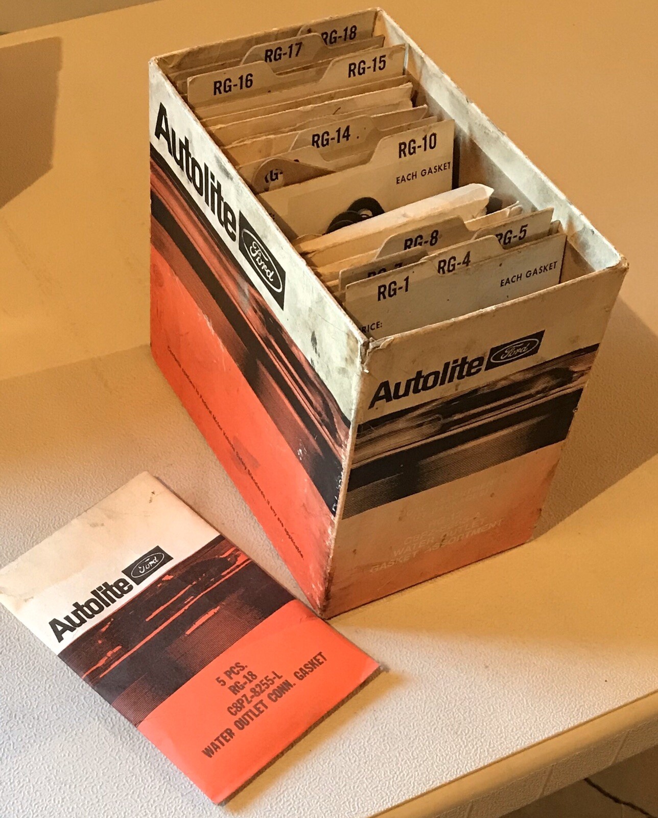 NOS Autolite Ford RG-12 water outlet gasket display box assortment Not complete.