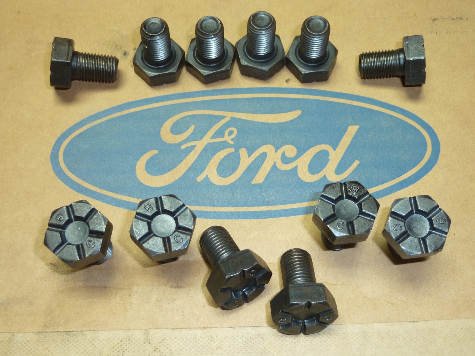 For your consideration is a set of 12 original Ford flywheel bolts. They arein excellent NOS unused condition and are assembly line correct! These are original Ford parts not reproductions or imports. Get the right parts for your classic! I ship almost every day, if you need it quickly I can even ship overnight! I will ship most items internationally, please ask for a quote. I have new old stock, and used parts. From hotrods to kustoms, restorations to "ratrods" I have the parts for you! Please check back often, my inventory is updated weekly. All items are sold AS-IS! If you are unsatisfied with an item, contact me BEFORE YOU LEAVE FEEDBACK, and I will work it out with you. I will not ship until your payment clears. Please don't bid if you do not intend to pay. I will not lower prices on international customs forms. We strive to provide the best customer service, if you have any questions before or after the sale please contact us. Thank you, your business is appreciated!