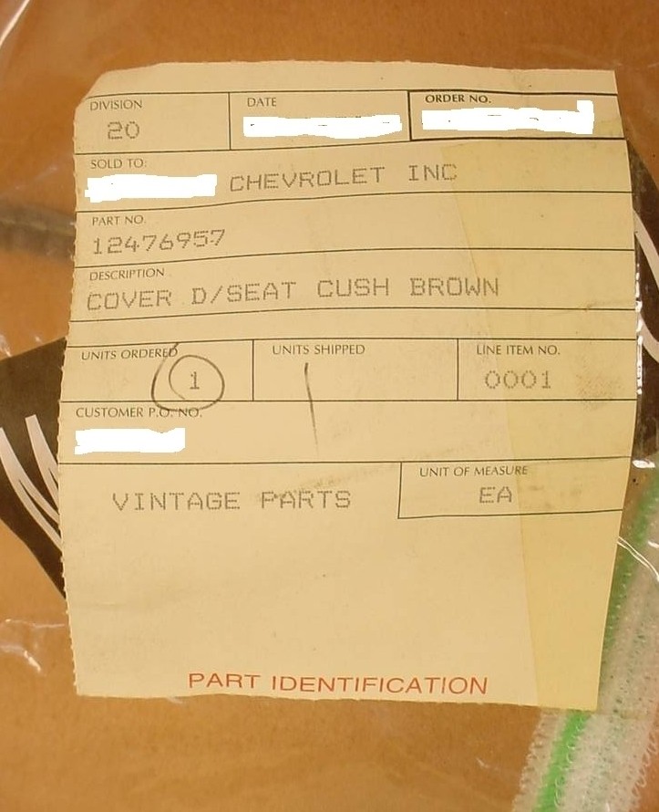 NOS GM # 12476957 Front Left (DRIVERS) Bucket Seat Back Cover Oak 2000 C Series