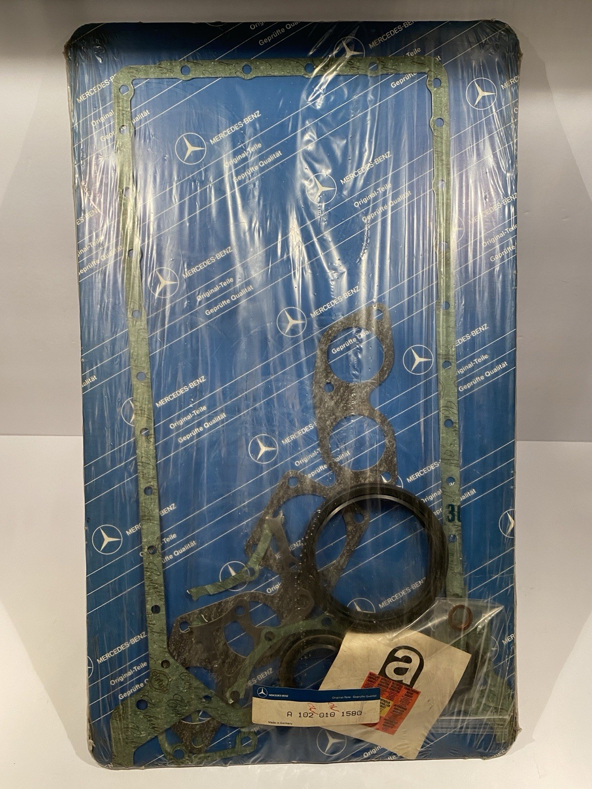 Part # 102 010 15 80 ( later updated to 102 010 38 05) is an OEM gasket kit for some applications of the M102 motor. This includes W201 190E and some other Euro models of W123 and W124 with the M102. \*\*\*As pictured, TWO OF THE GASKETS ARE TORN/DAMAGED\*\*\* This kit is being sold as-is. There are still a bunch of good parts. This kit was sealed before I opened it for pics. Many of the gaskets were made by Elring as original equipment. FREE SHIPPING!! (Domestic) I’m currently listing a LARGE COLLECTION of Mercedes-Benz parts that includes some rare new old stock parts, as well as some pre-owned parts in tested and working condition unless otherwise stated. CHECK OUT MY FEEDBACK and buy with confidence! FOLLOW OR SAVE MY ACCOUNT AS A FAVORITE SELLER TO SEE DAILY OR WEEKLY LISTING UPDATES. PRICING/OFFERS: THIS IS AN EVER CHANGING MARKET. There is always a price difference for an OEM part versus an aftermarket one, and I believe my pricing is fair at the time of listing. I price my listings by researching part availability, as well as prior sales results across multiple retailers and platforms. That being said, I’m happy to entertain offers. Keep in mind most of my listings include shipping, which is ever increasing in price. THANKS TO ALL OF MY REPEAT CUSTOMERS!