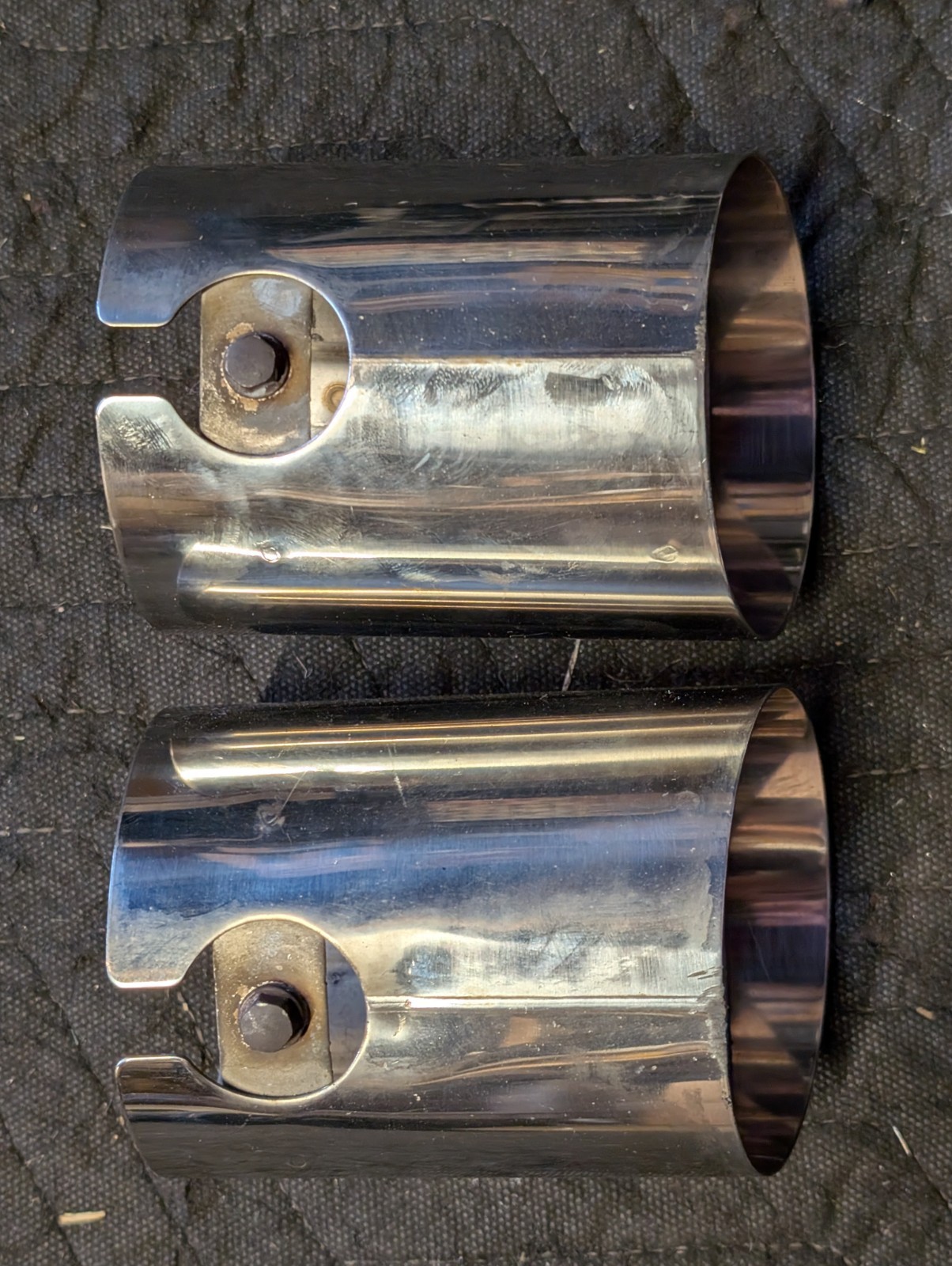 Used OEM muffler tip set for 2004 to 2008 Acura TSX. Includes mounting hardware. Please see photos for the exact item.