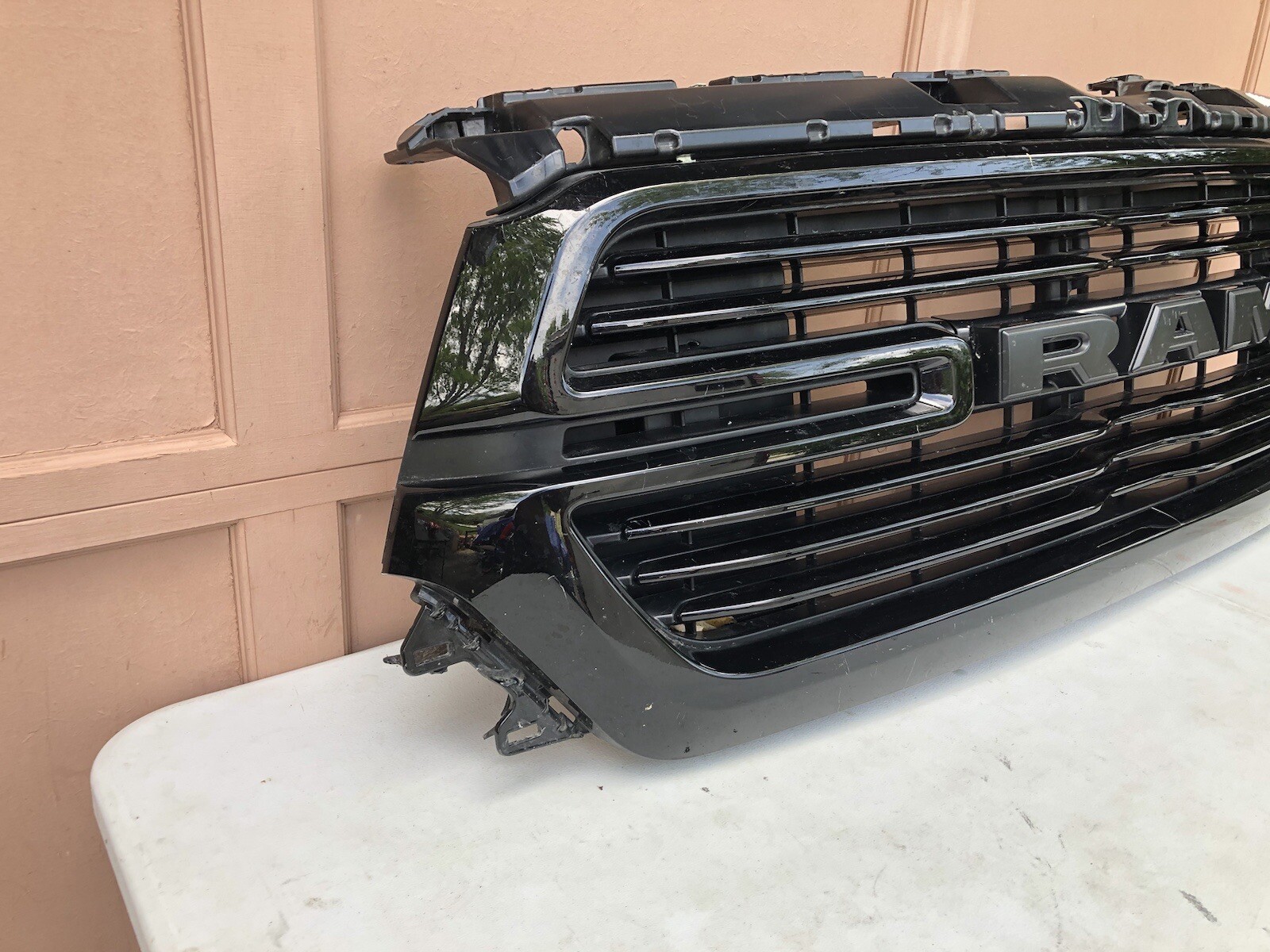**OEM 19 20 DODGE RAM 1500 FRONT BLACK GRILLE GRILL 68366528AH** ITEM DESCRIPTION:**RIGHT PASSENGER SIDE LOWER TAB IS BROKEN OFF, LOWER BACKING ON GRILLE IS BROKE, WONT SHOW WHEN INSTALLED, MODERATE AMOUNT OF SCRATCHES ON FRONT OF GRILLE, SEE RED MARKINGS FOR DETAILS,** **WILL SHOW NORMAL SIGNS OF ROAD WEAR,** This is a genuine RAM/DODGE part. Not an aftermarket part. Please Verify the Correct Part Number /Model that Fit Your Vehicle, before Purchasing. Customer satisfaction is our top priority. Please reach out with any questions/concerns you may have. If there is an issue with your order please reach out before leaving feedback. Thank you for looking.