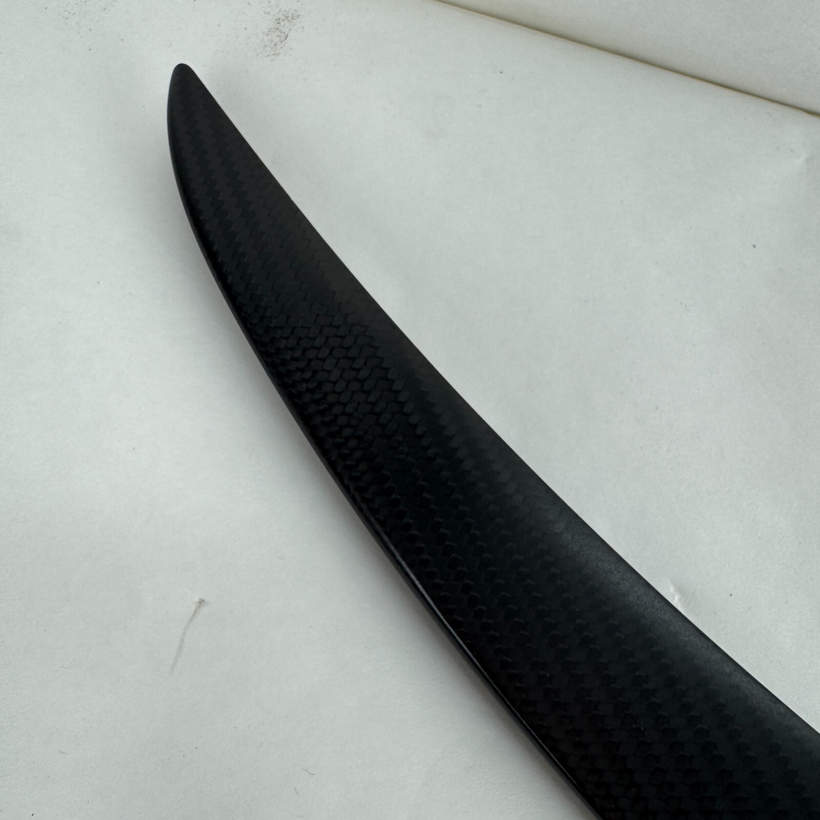 **OEM 2017 - 2023 Tesla Model 3 Carbon Fiber Rear Trunk Spoiler Lip 1455166-00-C** _OEM Tesla spoiler in used working condition with normal road wear from use such as minor chipping on the edge and some scuffs. See photos for additional details. Item will be shipped as pictured._ FREE SHIPPING, ORDER SHIPPED WITHIN 24 HOURS OF PAYMENT MONDAY - FRIDAY FREE 30 DAY RETURNS _PR / HI / AK / VIRGIN ISLANDS BUYERS MUST CONTACT PRIOR TO PURCHASING FOR A SHIPPING QUOTE_ sp - 21