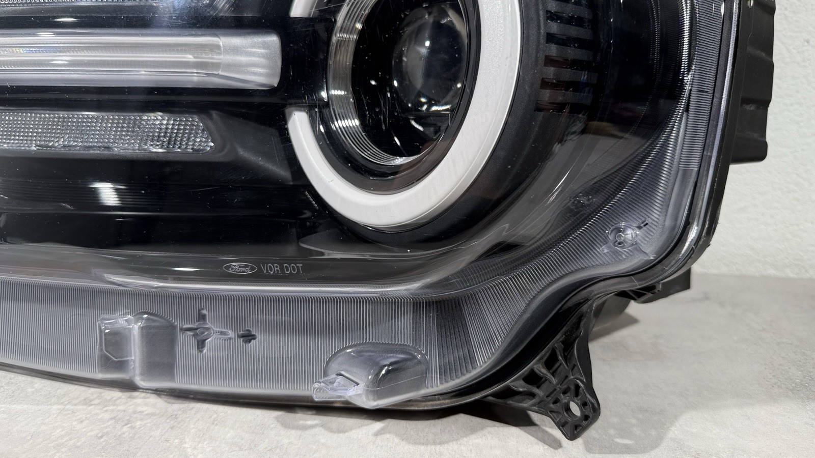 See photos for condition. Expect NORMAL road wear. GENUINE OEM FORD PART. Disclaimer: There may be micro scratches that are only visible from a specific angle in direct light. THIS HAS THE WHITE INNER RING!!!! LENS HAS SMALL SCUFF AS SHOWN IN PICTURE #3 LENS HAS SMALL SCRATCHES AS SHOWN IN PICTURE #11 UPPER TAB HAS A PLASTIC PIECE DAMAGED / BROKE OFF AS SHOWN IN PICTURE #19 DAMAGED TABS AS SHOWN IN PICTURES #13 #14 AND #18 SMALL HOLE IN HOUSING AS SHOWN IN PICTURE #21 BROKEN OFF HOUSING PIECE AS SHOWN IN PICTURE #22 MODULE NOT INCLUDED Send us a message with any questions or concerns. \\* Please understand that our products are used, we will disclose any and all information regarding damages or imperfections. It would be wise to closely examine all photos before deciding to purchase an item. \\*\\* We do offer a 30-day return policy that covers a product defect or any undisclosed information about the quality of the product. I do charge a 25% return fee for buyer error. IMPORTANT : No refund if damaged during return shipping. Buyer is responsible for fitment please look at the photos and part # to make sure its the correct part \\*\\*\\* Please allow for 1-2 business days from the date of purchase to receive a tracking number. All of our products are packaged securely and inspected before being released to ship. Thank you for your business.