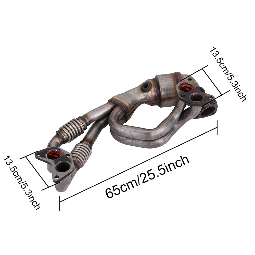 Product Description Specification: Body Height: 4 in Body Length: 4 in Body Material: Stainless Steel Body Shape: Round Body Width: 4 in California Certified: No Converter Quantity: 1 Inlet 1 Type: 3 Bolt Welded Flange Inlet 2 Type: 3 Bolt Welded Flange Inlet Quantity: 2 Inlet Type: 3 Bolt Welded Flange Outlet 1 Type: 3 Bolt Welded Flange Outlet Quantity: 1 Outlet Type: 3 Bolt Welded Flange Overall Length: 27 in Oxygen sensor location: Pre And Post Catalyst Substrate Material: Ceramic OEM Number: 44620AA740, 44620AB43A, 44620AA32A, 44620AA010, 4620-AA79A, 44620-AB350, 44620 AA740, 44620 AB43A, 44620 AA32A, 44620 AA010, 44620AA79A, 44620AB350, 44620-AB620, 44620AB620, 44620-AA970, 44620AC07A, 44620-AC750, 44620AC750, 674-864 Fitment: 2006 Saab 9-2X 2.5L 2006-2010 Subaru Forester 2.5L 2006-2011 Subaru Impreza 2.5L 2008-2011 Subaru Impreza Sport 2.5L 2006-2012 Subaru Legacy 2.5L 2006-2012 Subaru Outback 2.5L Packing list: 1\* three-way catalytic converter; 1\* Accessories (package) Note: It is possible that there is a little error because of the manual measurement. Caution: Due to increased emissions standards, this item is not certified for sale in California, New York and Maine. If your vehicle is registered in California, New York or Maine DO NOT BUY this item. This parts meets federal emission standards and is not intended to replace parts built to California standards. Any modifications of any kind will void all warranty coverage for this item. Warranty is voided if catalytic converter substrate is melted or broken; this is due to an issue with the car itself and not the catalytic converter. Due to its size and shape it may encounter cosmetic flaws during its stocking and shipping process. The powder coating finish is designed to add shelf life by minimizing surface scratches which may deteriorate over time due to temperatures reached once in use. Products damaged as a result of abuse, misuse, improper repair, improper installation, alteration or modification will not be covered by the warranty. O2 sensors must be replaced when you replace the converter or warranty will be void. We have determined that failure of either the front O2 sensor (the front wide-band sensor), also known as an Air-Fuel Ratio Sensor or the read downstream sensor, can trigger a false P0420 code. Both sensors should be replaced with you replaced the converter. Catalytic Converters are built for long life expectancy on your vehicle. All Catalytic Converters are constructed from premium quality materials and are rigorously tested to meet or exceed your expectations.