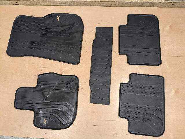 ## OEM BMW F97 G01 X3 X3M Front Rear All Weather Rubber Floor Mats Black SET - SKU: **52752** - Brand: **BMW** - Condition: **Used** - Notes: **Wear present! Intact! Set of 5!** **We're on Instagram! Follow us! oe\_mgarage** **All parts are used unless otherwise noted! Please understand that being that parts are used there may be some wear and tear & scratches etc. We cannot guarantee the condition of paint & or that paint color will be an exact match as yours. We try to show as much of the condition as possible through photos and notes!** **Original Car:** 2019 BMW X3 **Series:** G01 **Vin Number:** 5UXTR7C54KLF28159 **Mileage:** 126708 **Engine:** B46B20O0 **Transmission:** 1 **Part number:** 0 **Exterior Color Paint Code:** ALPINWEISS III (300) **SKU:** 52752 **Location:** D65 **Notes:** Wear present! Intact! Set of 5! **30 DAY WARRANTY!!** Warranty covers the cost of the item! It does not cover shipping or labor! Used condition items may have minor imperfections. Please look at pictures for details! And understand that this is a USED part after all! Compatibility is the responsibility of the customer to ensure!! Please feel free to reach out with any questions!! [