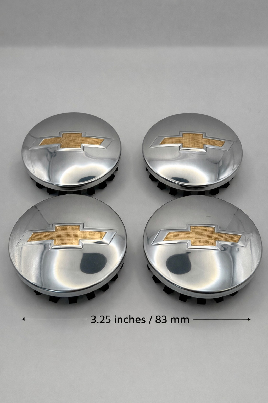 OEM Chevy Chrome Wheel Center Caps Set of 4 – 3.25" / 83mm – Hub Caps