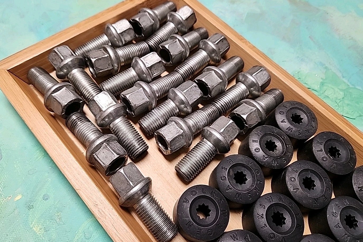 OEM FACTORY VOLKSWAGEN AUDI WHEEL LUG NUT BOLT SET 20 PCS LUGS BOLTS WITH CAPS