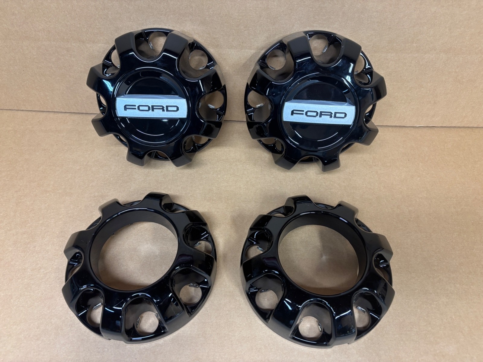 OEM Ford F-250 F-350 SD Gloss Black 8 Lug Center Cap SET 4 8 3/8 DIAMETER