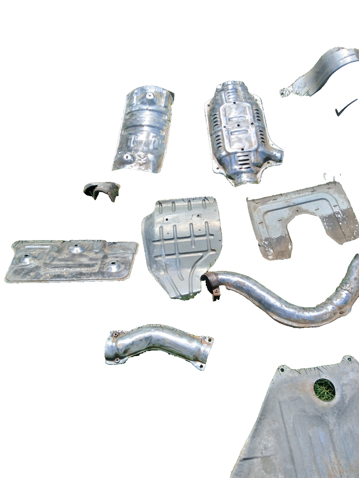 13 various OEM heat shields off of a 1983 Datsun 280ZX.