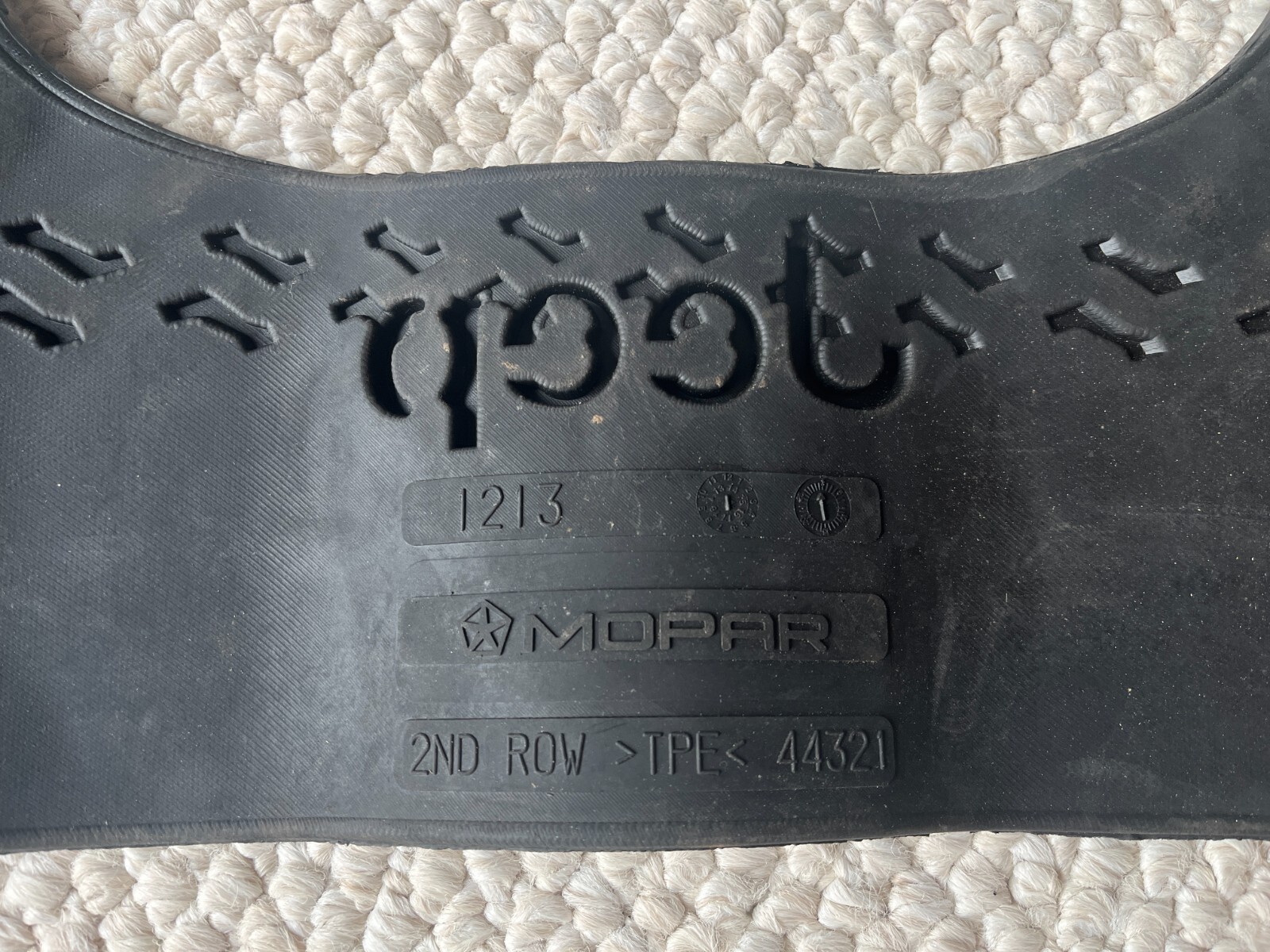 This listing is for an OEM MOPAR Jeep Wrangler BACK SEAT ONLY Mat Liner Part Number 68170562AC. This item is in very good overall pre-owned condition. As can be seen by the provided photos, this item is a little dirty from normal previous use, and can benefit from a cleaning. Winning bidder to receive the exact item pictured here. This item will ship ROLLED to the winning bidder. No returns accepted. All items sold AS IS. In the rare event that my service is unsatisfactory, please contact me prior to taking administrative action.** **Shipping to the lower 48 continental US States.