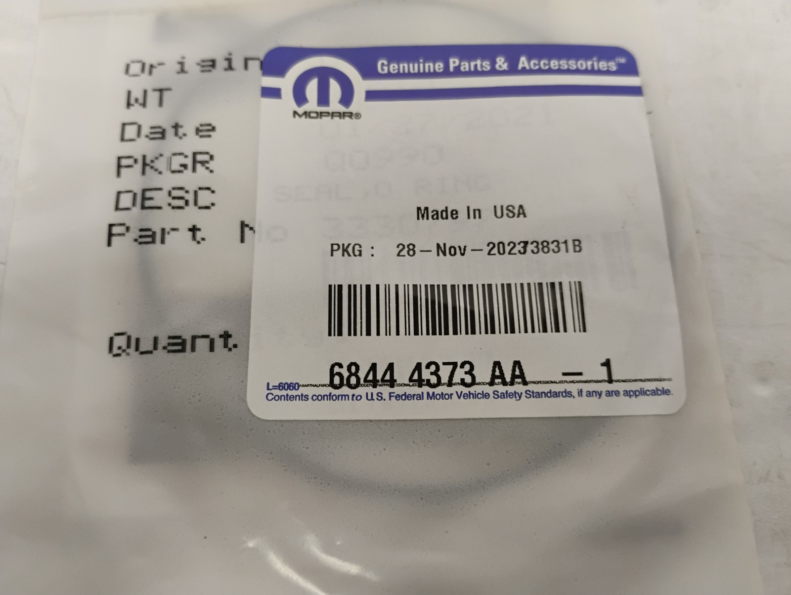 Thank you for choosing Auto Light America! For Sale Genuine OEM RAM 2500/3500 O-RING - Condition: OEM, Still In Bag, SEE PICTURES - Fitment: 2019-2024 RAM 2500/3500 - Ready to Install: Direct replacement, Genuine OEM part, not aftermarket - OEM Part Number: 68444373AA Compatibility: - Please cross-reference the OEM number to ensure this fits your specific model. - Verify compatibility before purchase. - Compatibility table should be used as a reference and does not guarantee fitment. Benefits of Purchasing from Us: - Deep Discount Savings: Compared to dealer costs. - Fast Shipping: We ship the next business day once the payment has cleared. - Local Pickup Available. Note: - All efforts are made to provide the best photos possible, but part colors may slightly differ from photo representation. - Ensure the part you are ordering is the exact part needed for your vehicle (year, make, and model). - Returns due to customer error will incur a 15% restocking fee, deducted from the refund. - Free shipping on sale items applies only within the 48 contiguous states. - Large items, such as bumpers and grilles, can only be shipped within the 48 lower states. - Shipping to international destinations, Alaska, Hawaii, or territories will require additional shipping costs, even if the item is on sale. We Appreciate Your Business!
