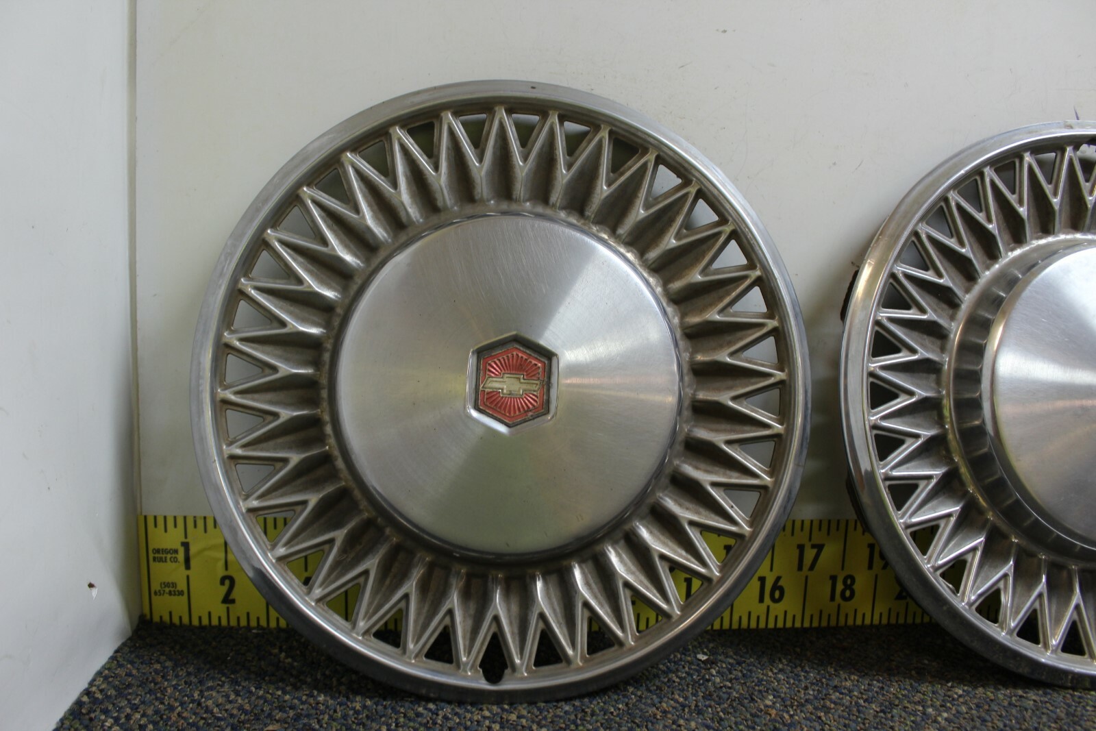 ********************************OEM Set of 4 14" Hub Caps Wheel Covers 00464991 14018248 00464992 insert******************************** ********************************Web type, Bowtie center******************************** ********************************1978 1979 1980 Chevrolet Malibu******************************** ********************************These also make great man cave decorations, wall art hangings Hot Rod Rat Rod******************************** **********************See all pics, be sure the application is what your looking for********************** **Set pictured is the set you will receive** **Will clean up better** ******Notables:****** **minor dings / scratches** ****************We have 2000+ vintage hubcaps listed, thousands more to come!**************** ****Check out our store!**** [