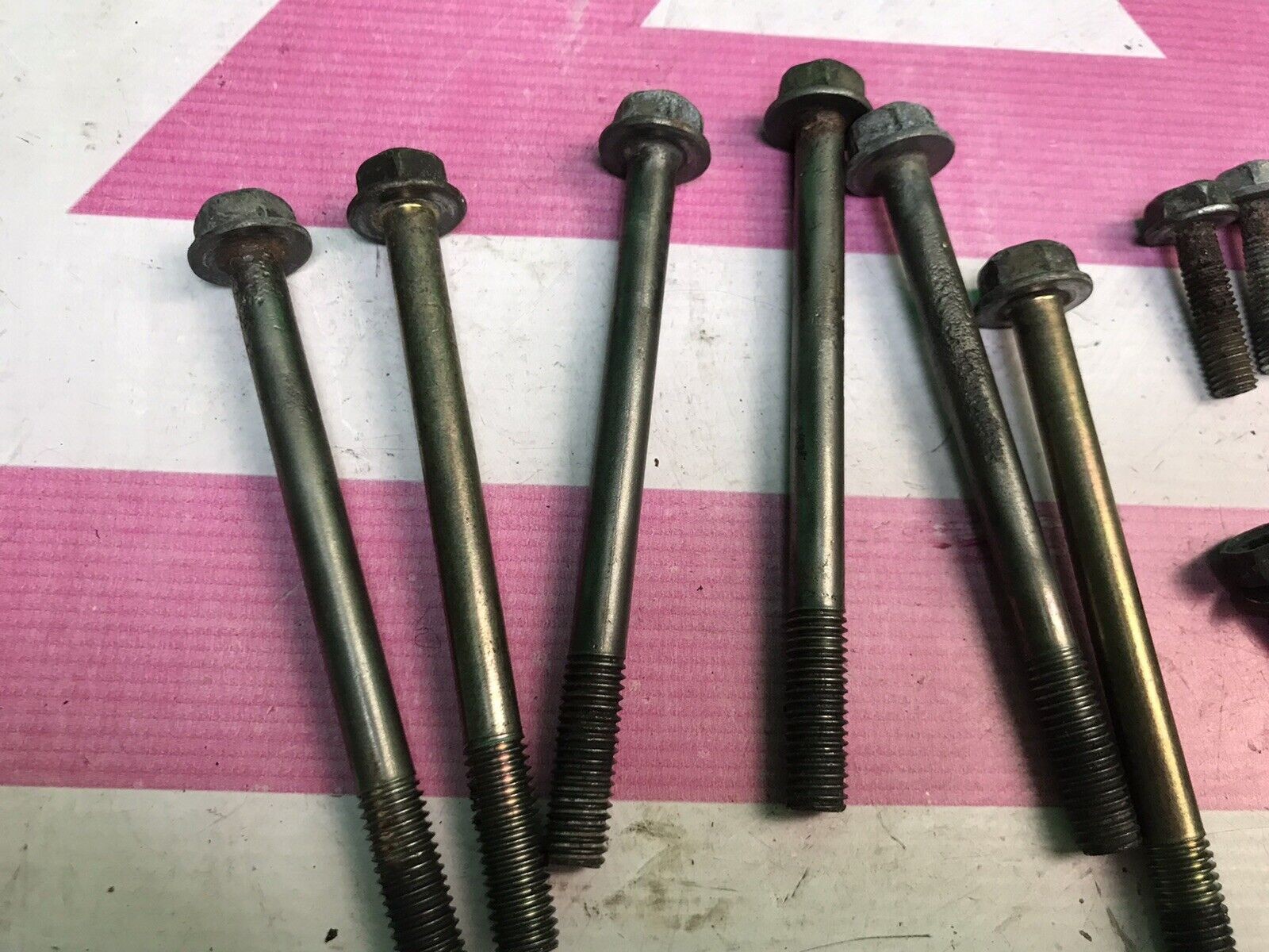 **Part: OEM Bolt Set** **Notes:** **Fitment: Subaru EJ Turbo Motors** While we do our best to include as much information as we can about fitment, fitment cannot be guaranteed. Please do your own research, match part numbers for replacement parts, or reach out with any questions. Items are used (unless otherwise noted) and will show varying degrees of cosmetic wear. They are in working condition. Installation may require additional parts/hardware. We will do our best to show and describe the nature of the wear in the photos and description. Exact item shown is exact item shipped. **Free shipping to lower 48.**  "WE CHOP, YOU SHOP!" Here at TCS we specialize in OEM and aftermarket parts for your WRX and STI. We also have parts on hand for other popular Subaru models. Shipping 5 days a week. We are dedicated to bringing you the parts you need at the price you can afford. Our inventory is always growing and changing as we get new parts in often. We are on Facebook, Instagram, TikTok, and you can also find us on our website (see product images for address).