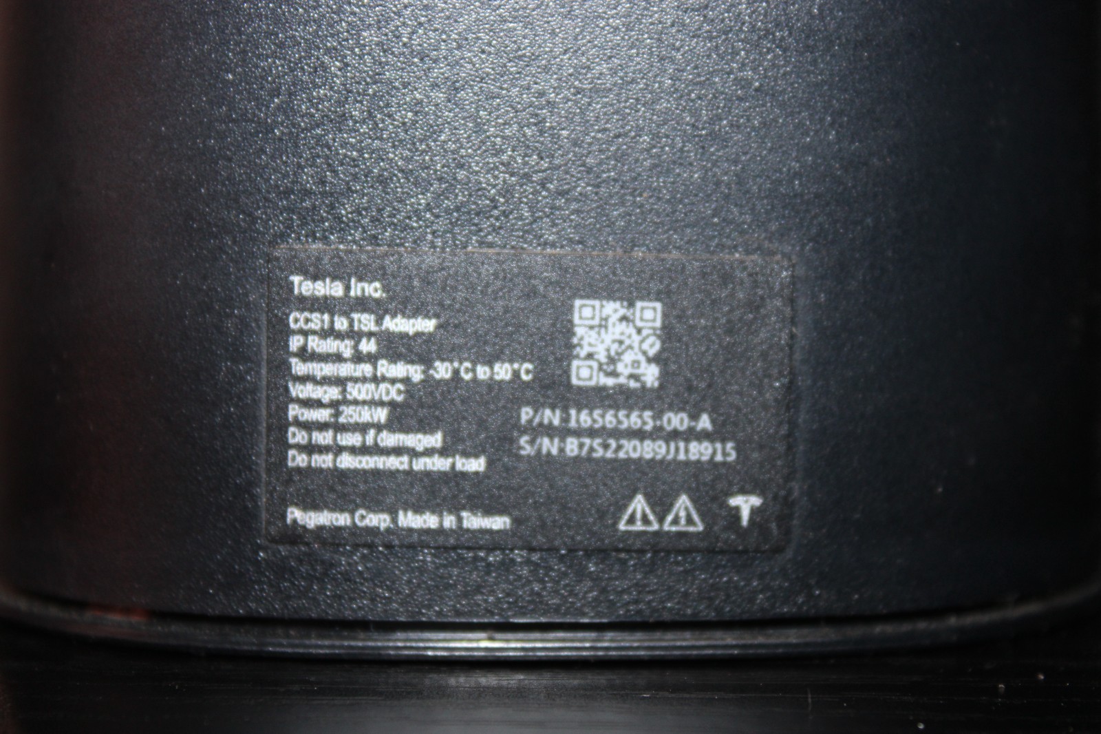 The Used OEM Tesla CCS Combo 1 (CCS1) Adapter (Part No 1656565-00-A) is a genuine Tesla product manufactured in Taiwan. This adapter is designed to provide a charging solution for electric vehicles, specifically those with the Tesla charging system. With a manufacturer part number of 1656565-10-A, this adapter is a reliable and authentic component for Tesla owners looking to enhance their charging capabilities. Please note that this product does not come with a warranty.